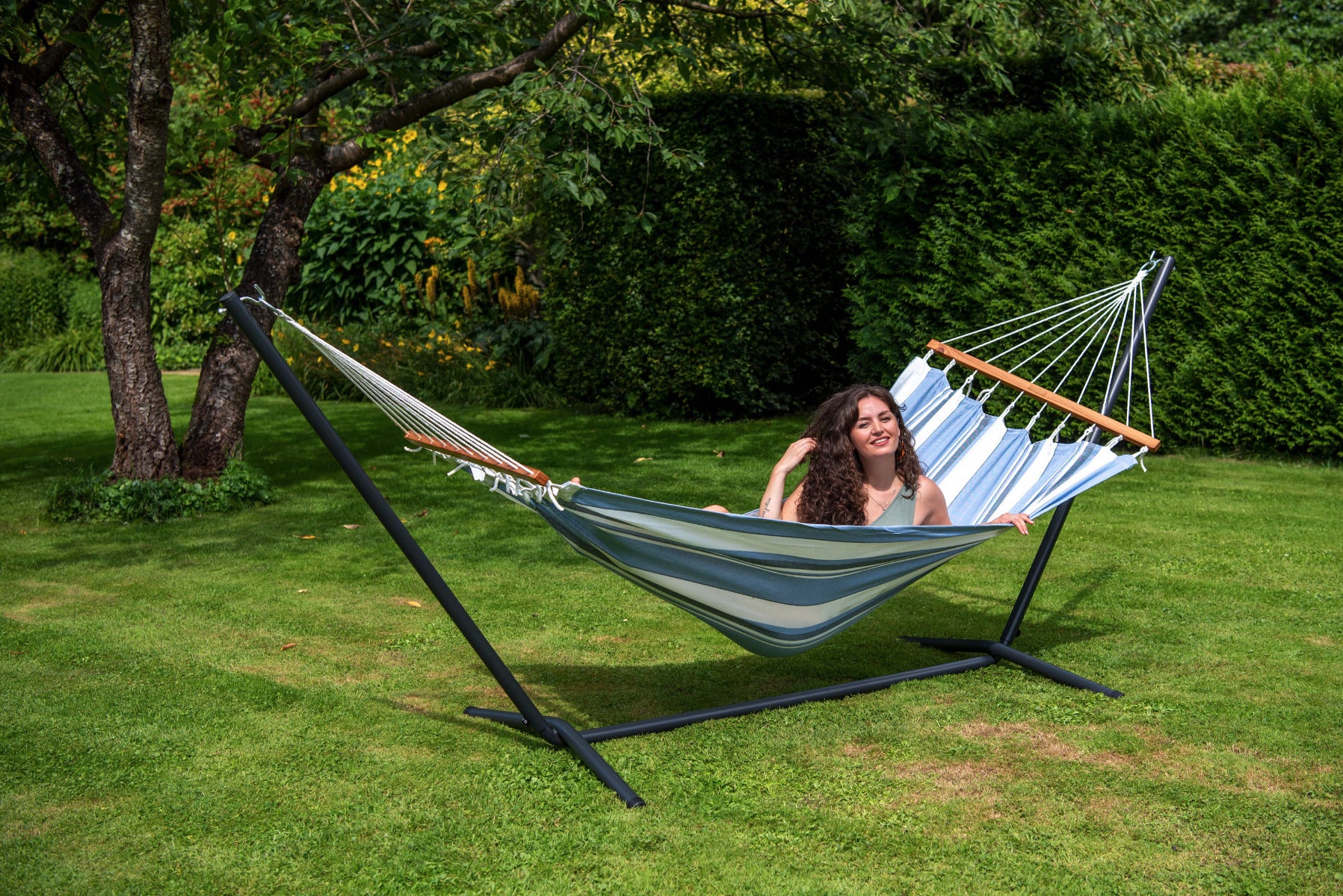 Het doek van deze hangmat is gemaakt van Oeko-Tex® gecertificeerd katoen. Het bestaat uit 70% katoen en 30% polyester. De polyestergarens zorgen ervoor dat het katoen niet te veel uitrekt en zijn vorm behoud.