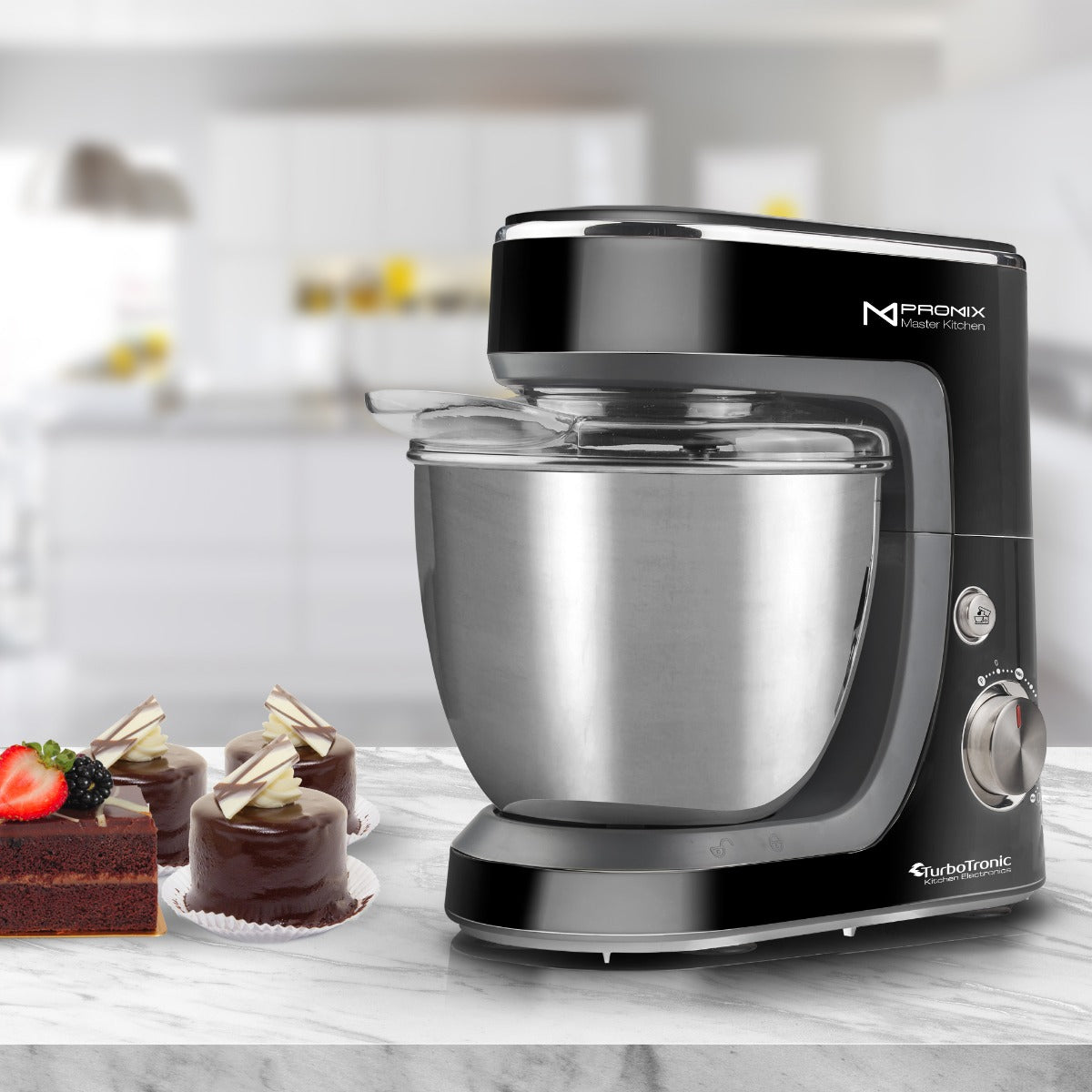 Maak kennis met de nieuwe premiumlijn mixers van TurboTronic. De ProMix TT-017 keukenmachine is meester in de keuken. Deze topmachine tilt je keuken naar een hoger niveau. De TT-017 biedt krachtige functies en prestaties, voor snelle, efficiënte mix- en kwaliteitsresultaten.