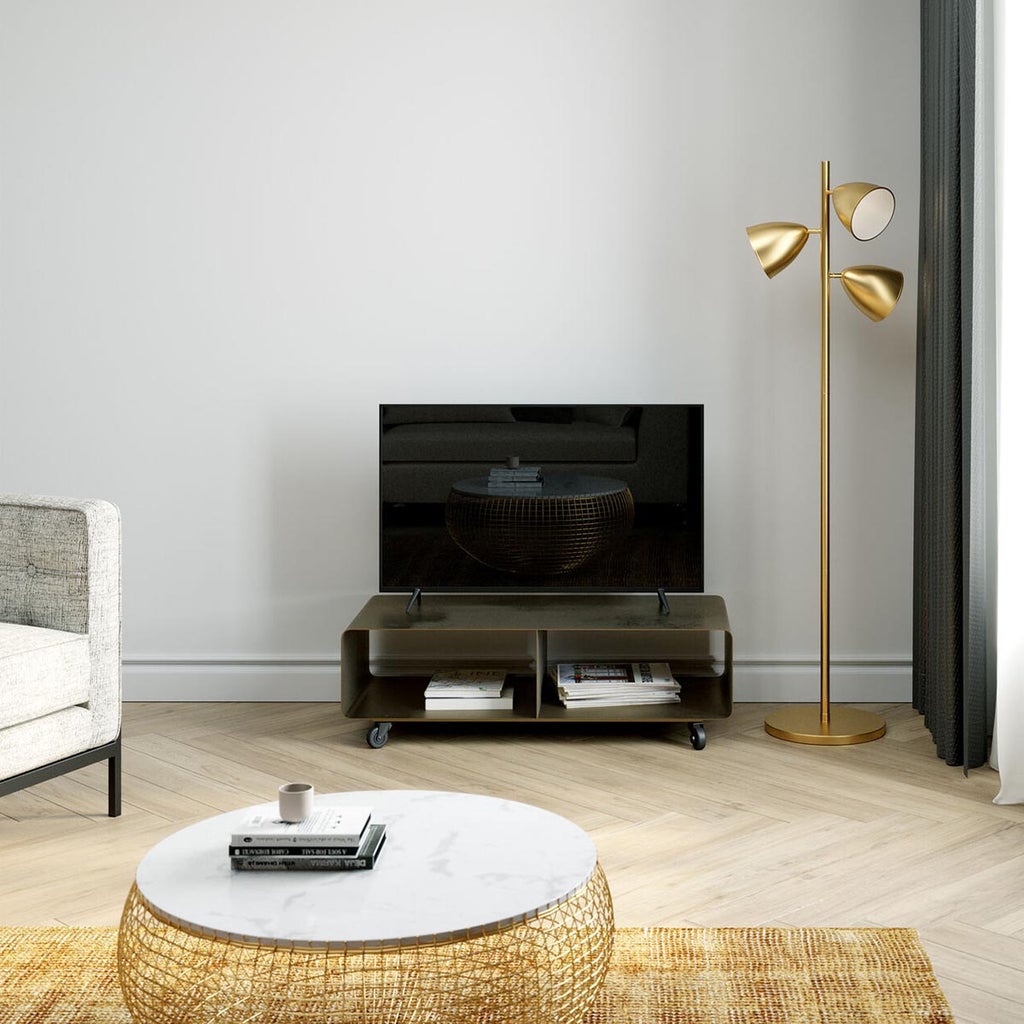 - Het TV-Meubel Loung M Mobiel Brons van Kare combineert industriële stijl met mobiliteit en functionaliteit.