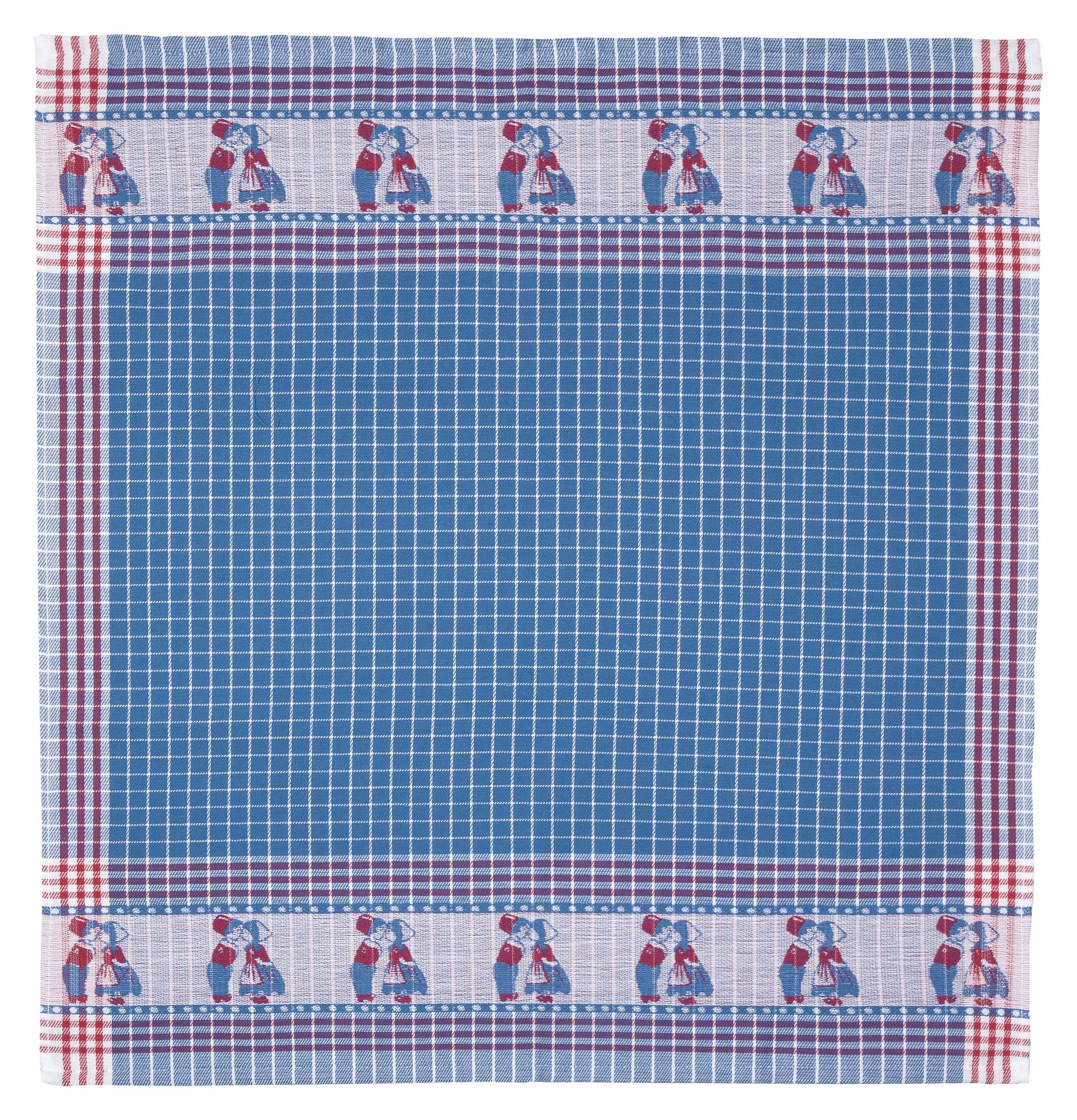 Deze geweldige set met luxe theedoeken met blok patroon in design Kissing Couple Blauw past in iedere keuken!