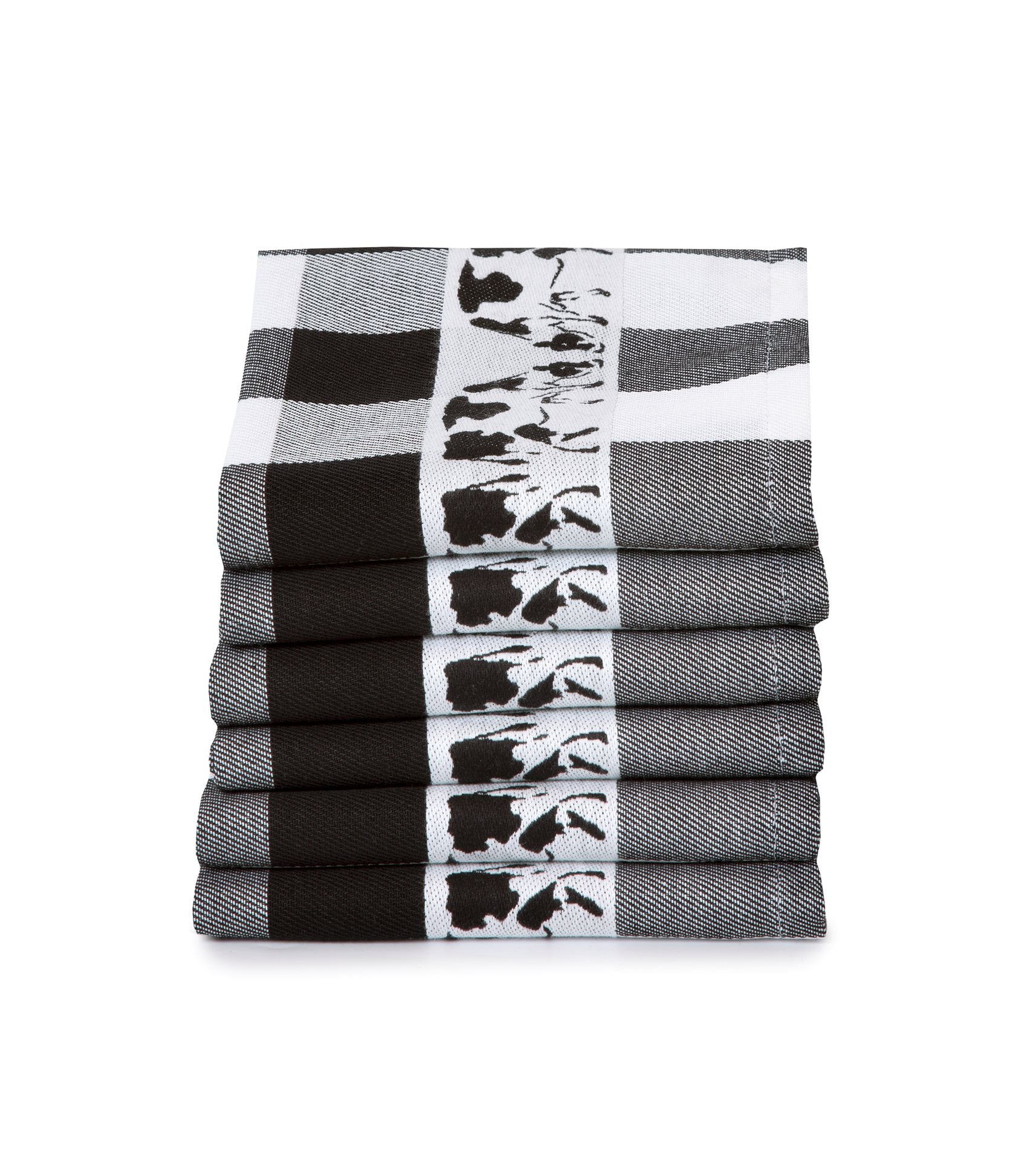 Twentse Damast Theedoekenset - 6 stuks - Koe Zwart