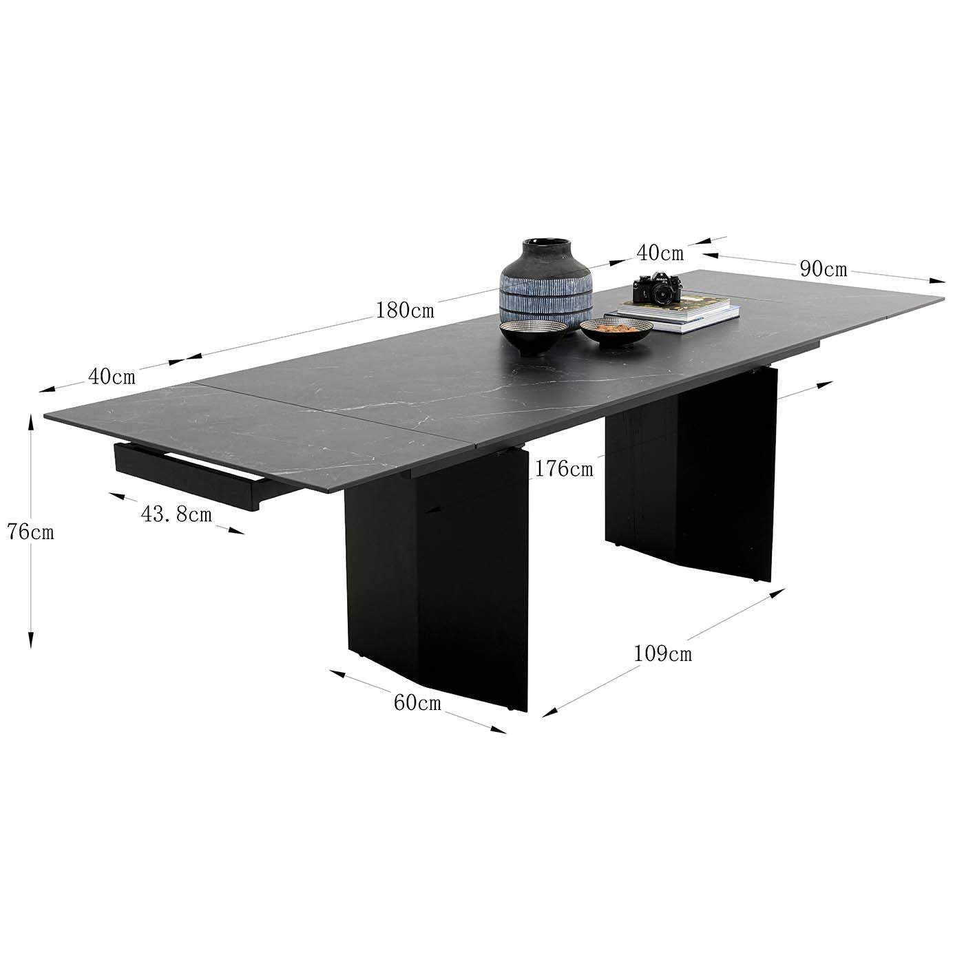 Uitschuifbare eettafel Novel 180x90cm zwart Kare Design