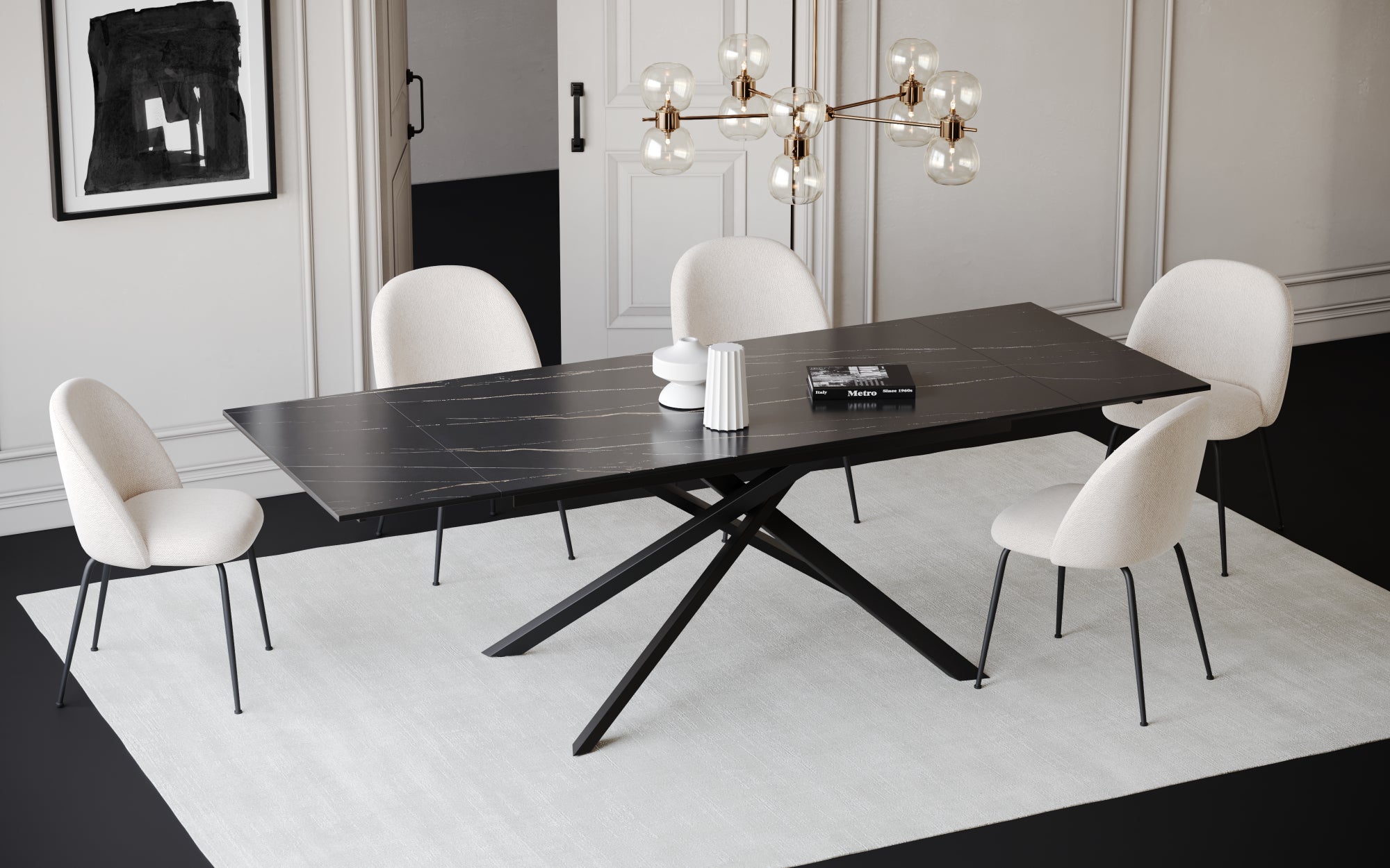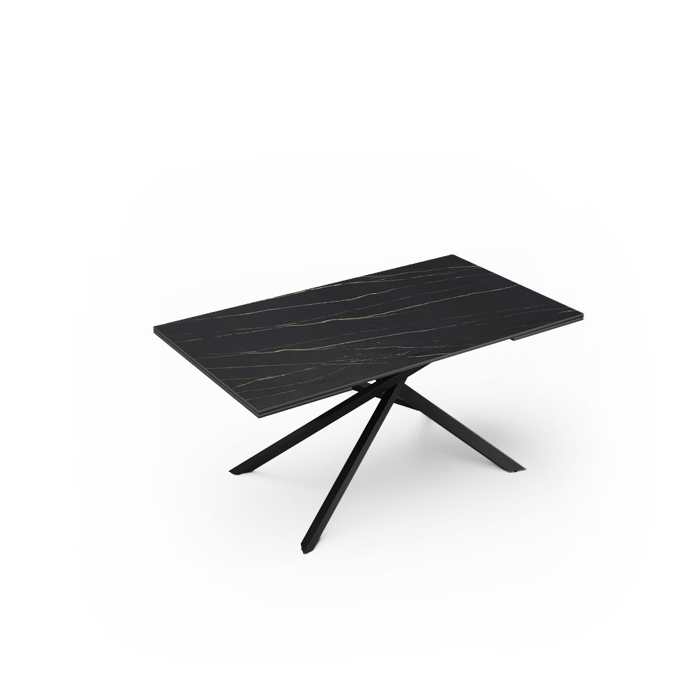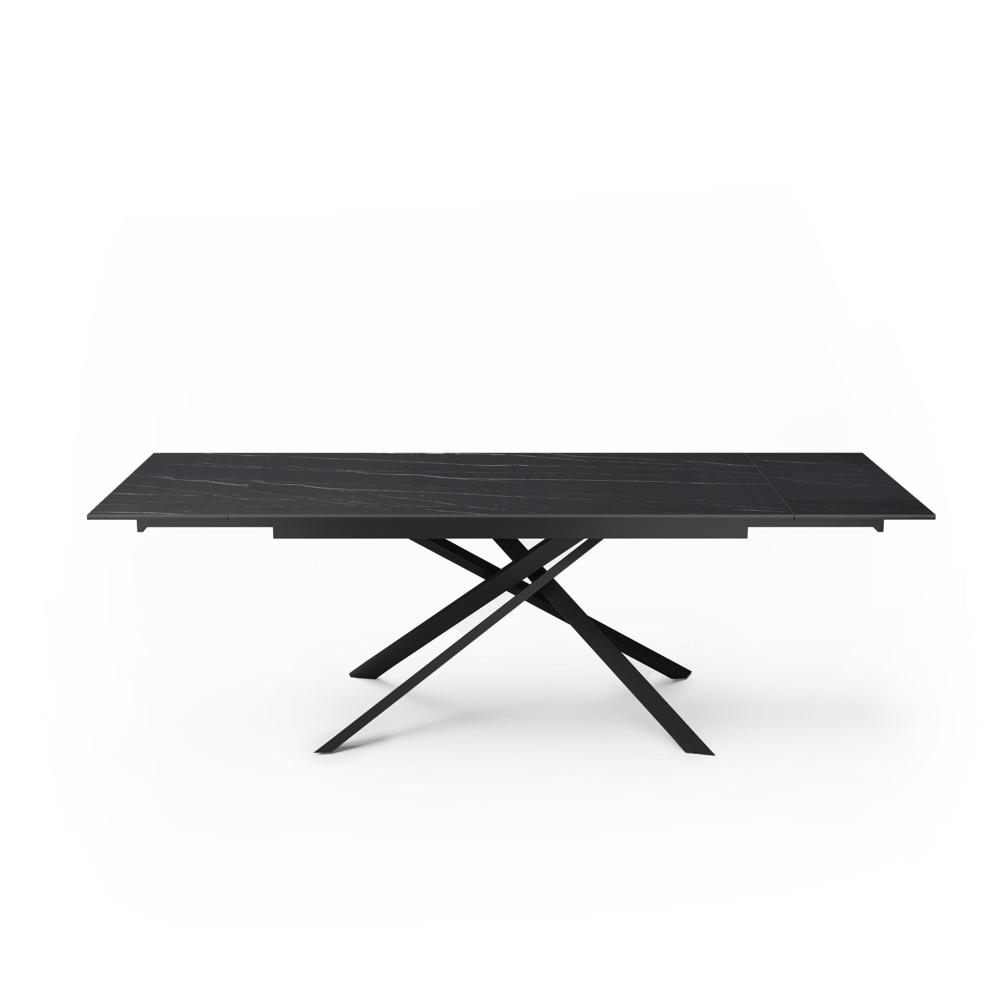 Uitschuifbare tafel voor 10 personen, zwart marmer keramiek en glas