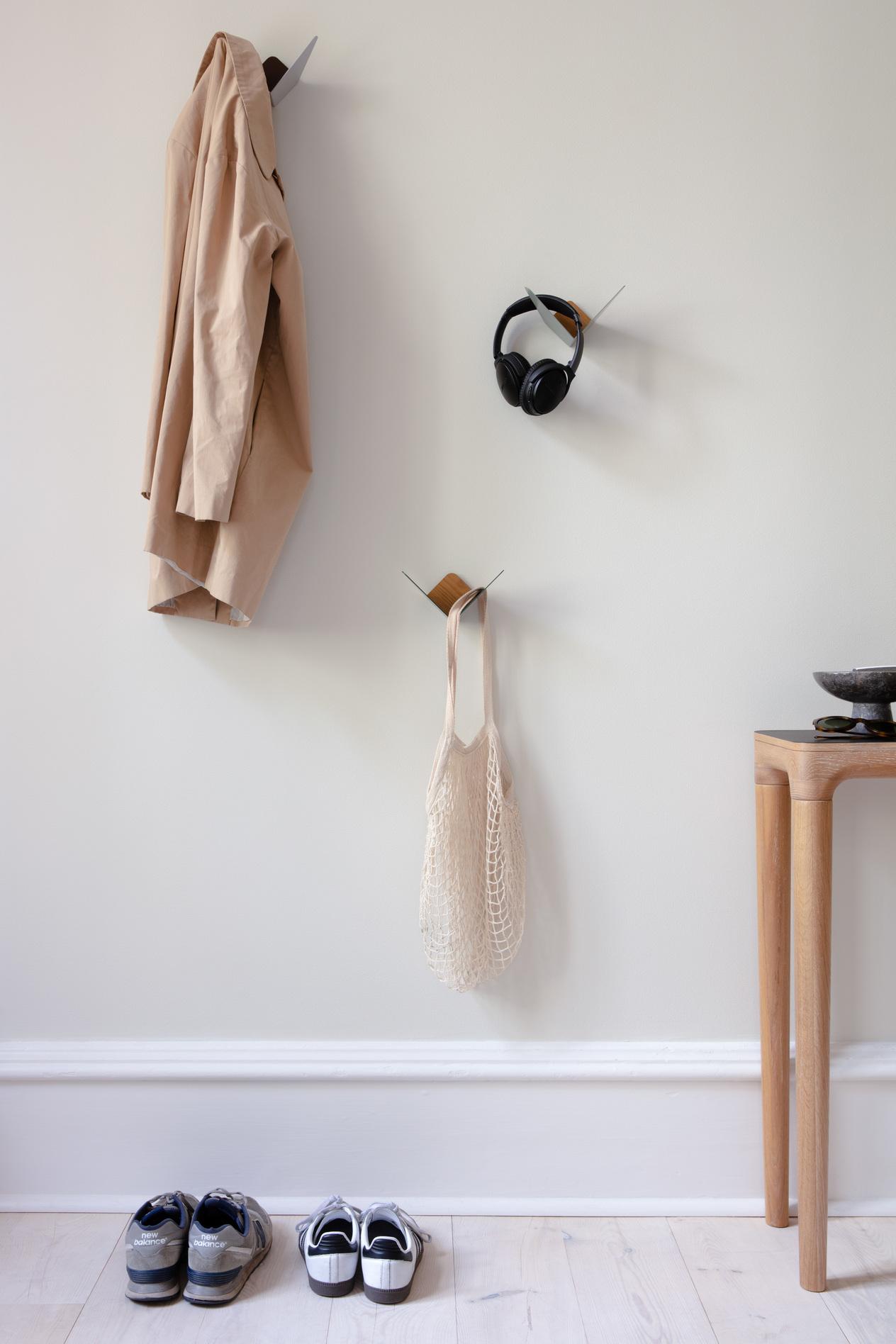De wandhaak houdt kleine voorwerpen op zijn plaats en zorgt ervoor dat je je spulletjes altijd weer terug kunt vinden. Het stijlvolle en minimalistische ontwerp is een opvallende verschijning in jouw interieur. Deze wandhaak biedt jou de mogelijkheid om onder andere je jassen en sjaals er aan op te hangen. Door de kleine inkepingen kun je je sleutels en portemonnee hierin gemakkelijk kwijt. De Butterflies wandhaak zorgt ervoor dat je altijd je spullen bij de hand hebt, precies op de plek waar je ze nodig hebt. Kortom, hang de Butterflies wandhaak in de gang, zodat je zonder lang te zoeken je spullen bij de hand hebt.