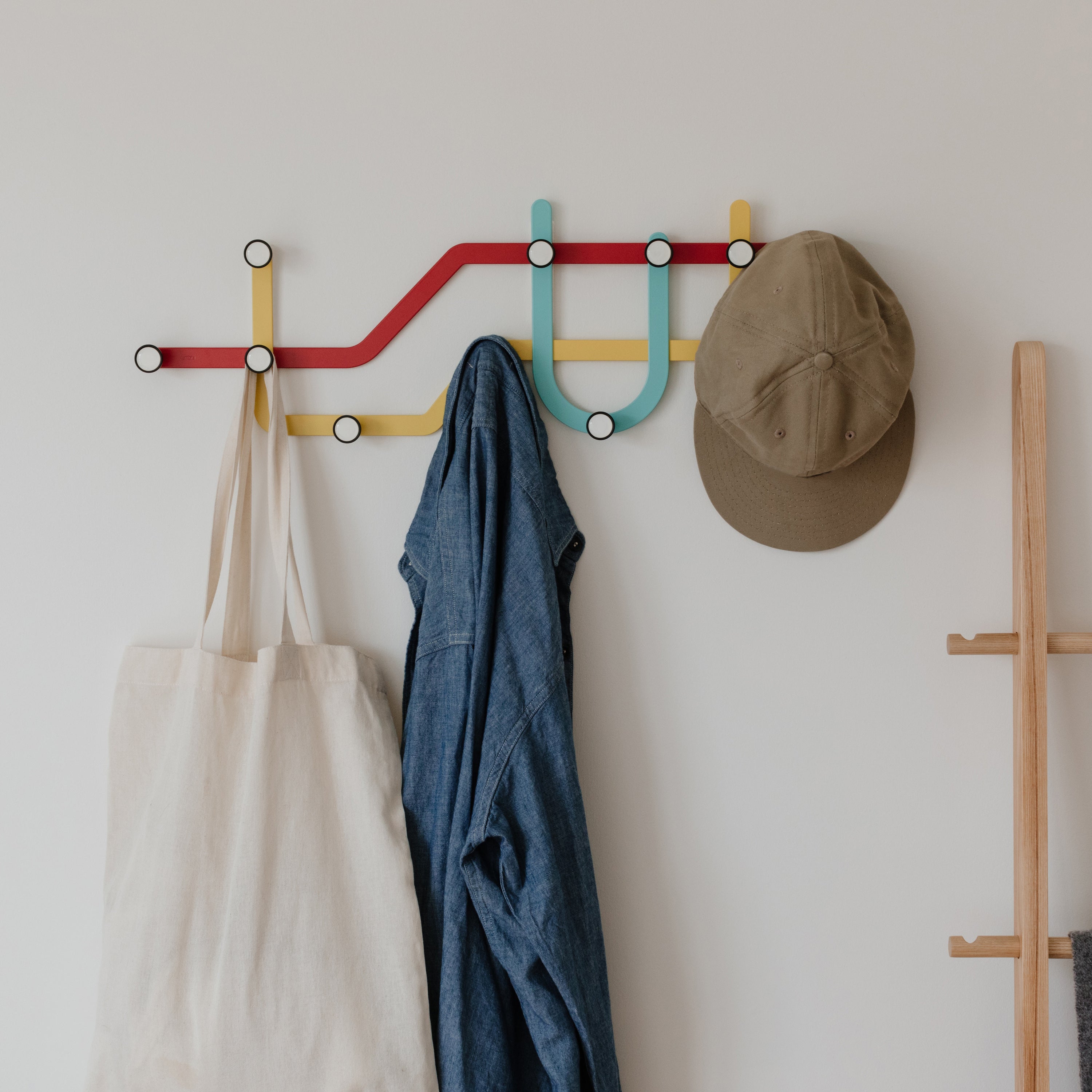 De Umbra Subway Wandkapstok is in de eerste plaats natuurlijk handig voor het ophangen van je garderobe aan jassen, maar hij ziet er zo leuk uit dat het ook nog een mooie toevoeging aan de hal is! De kapstok is duidelijk geïnspireerd op alle lijnen in het metrostelsel. Een originele inspiratiebron! Op de tien stevige haken kun je lekker veel jassen hangen. Ze kunnen elk ongeveer 2 kilo dragen, dus een dikke winterjas is geen probleem!