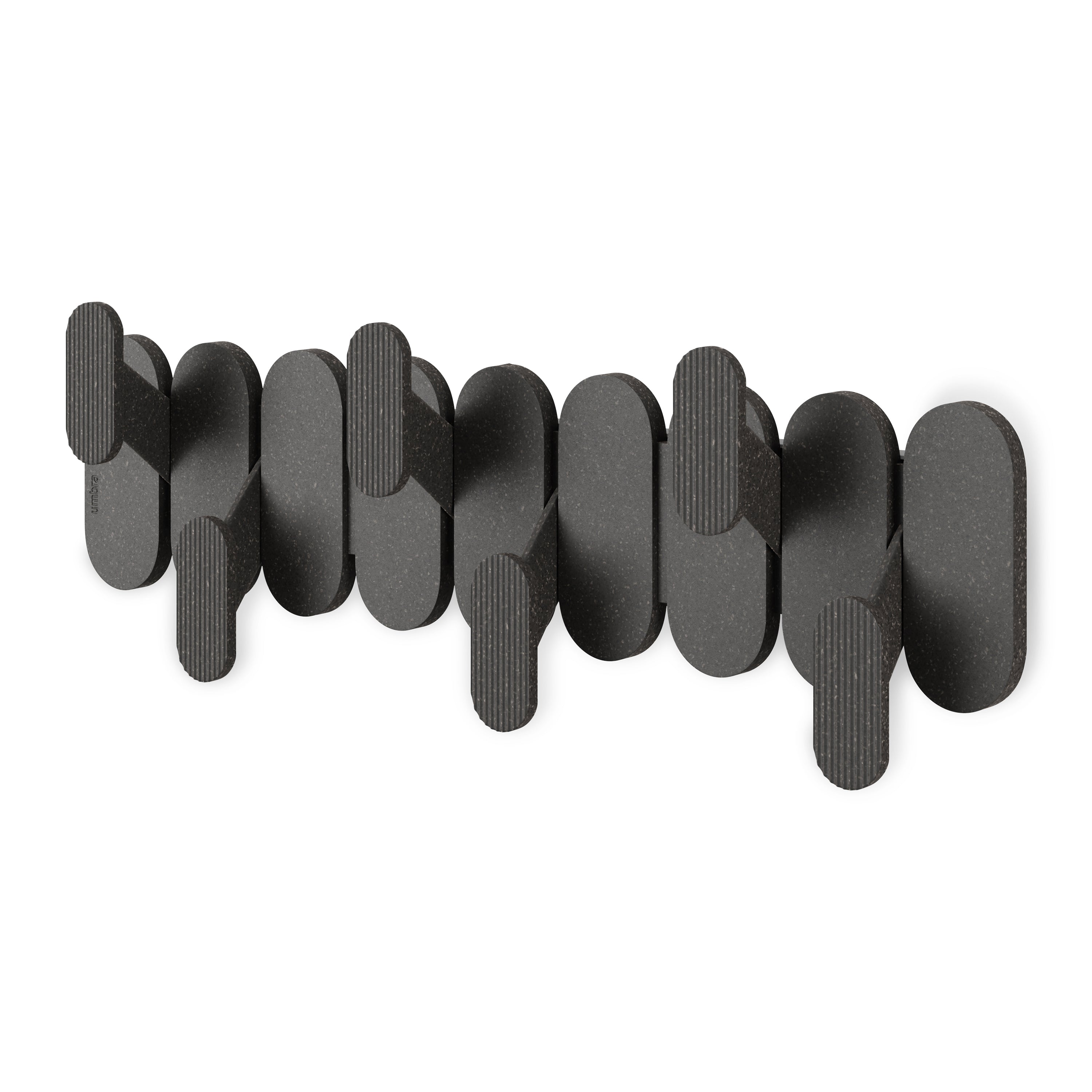 Slingerende spullen? Niet met de Tempo van Umbra! Deze slimme wandkapstok met 6 verspringende haken in een strak design van gerecycled materiaal zorgen voor orde en een grafisch statement. Voor jassen, tassen, handdoeken en complimenten aan de muur!