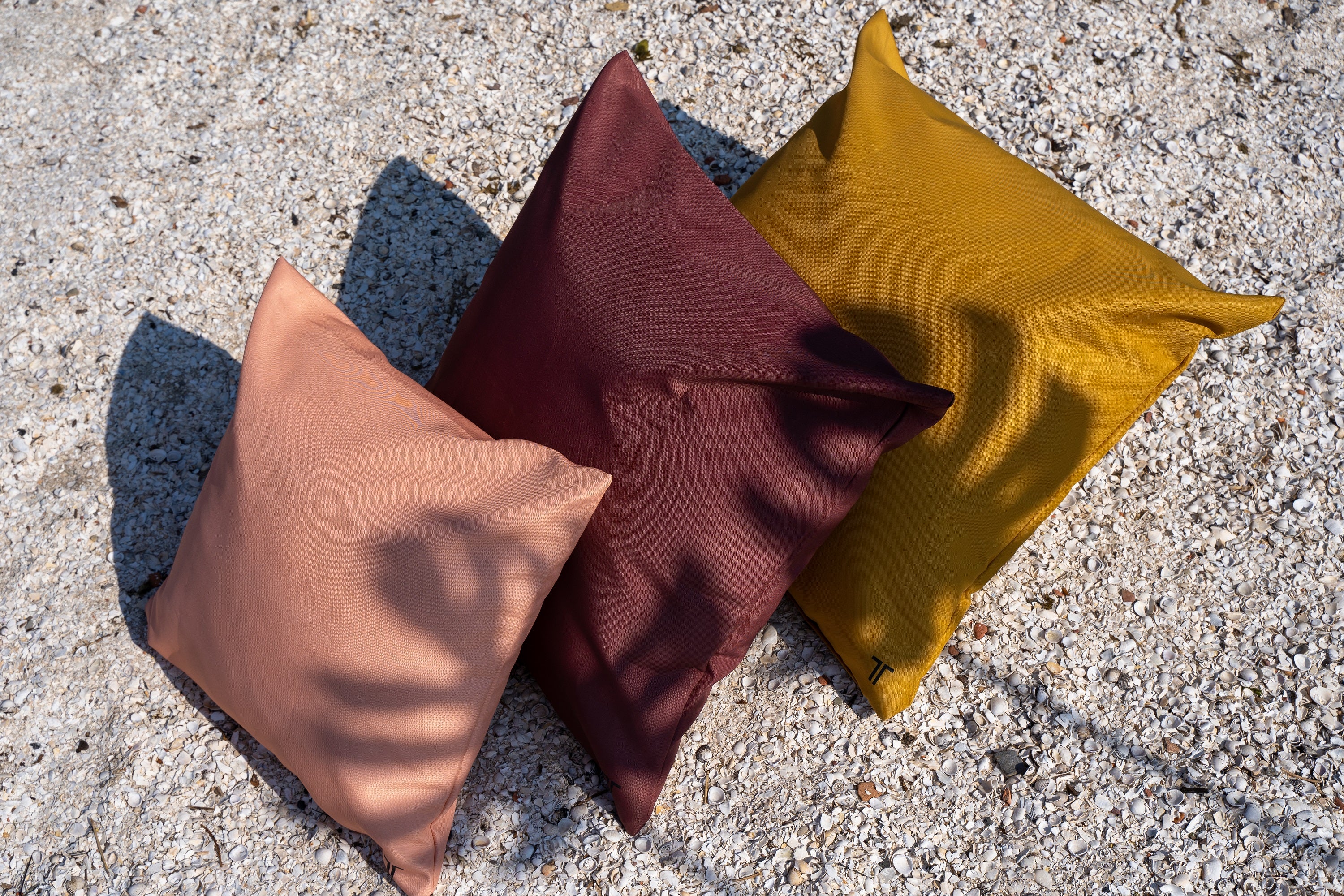 - De kussens zijn voorzien van een rits en zijn gemaakt van een soepele stof met een hele subtiele glans, dit geeft de kussens een luxe uitstraling