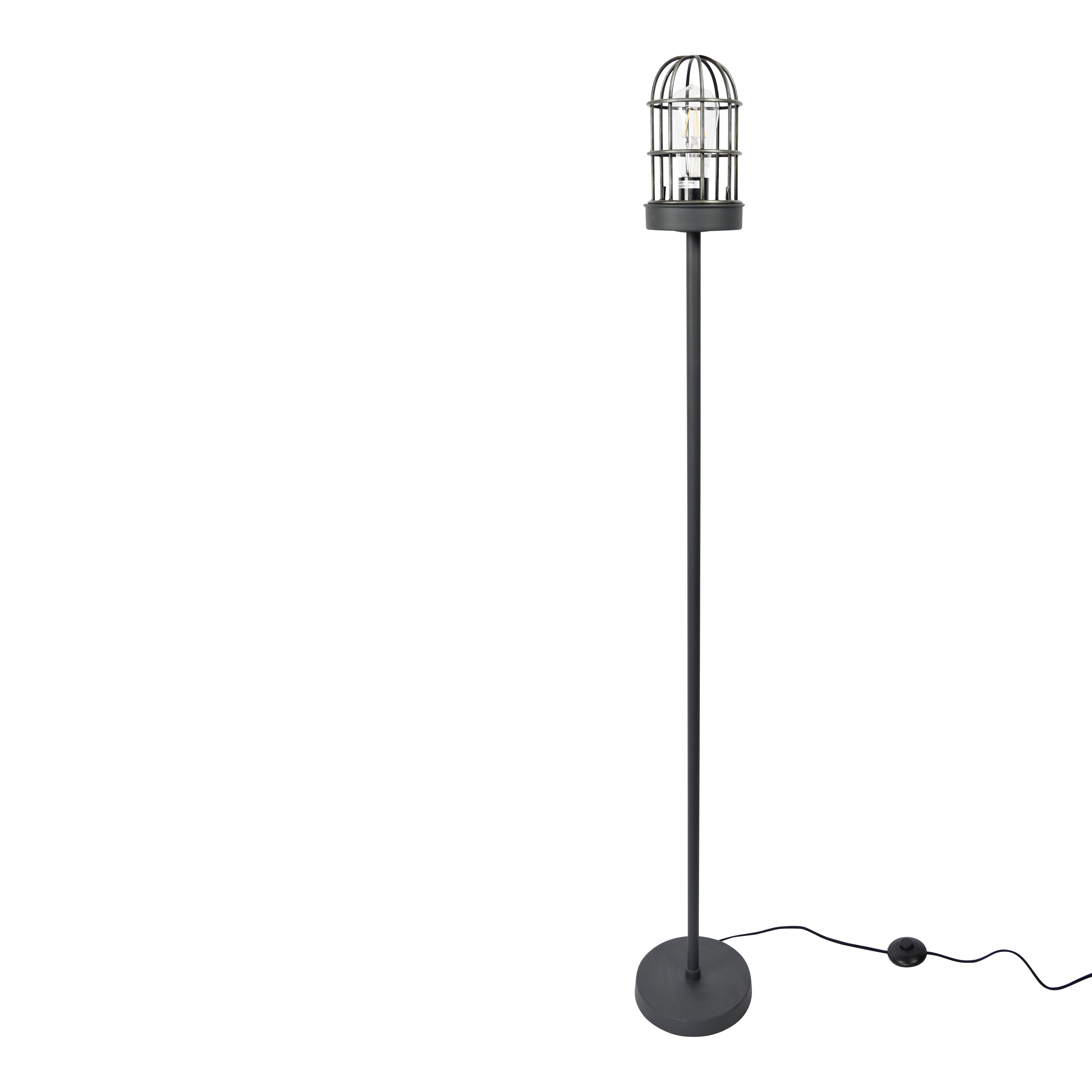 Vloerlamp Barn van Urban Interiors is voorzien van een robuuste metalen kooi. Door zijn ranke vorm kan deze lamp gemakkelijk geplaatst worden naar bijvoorbeeld een bank of in een donkere hoek. De lamp is voorzien van een zwart stoffen snoer met schakelaar. De voet is voorzien van een mat zwarte coating, de kooi is handmatig voorzien van een industriële donkere zink look.
