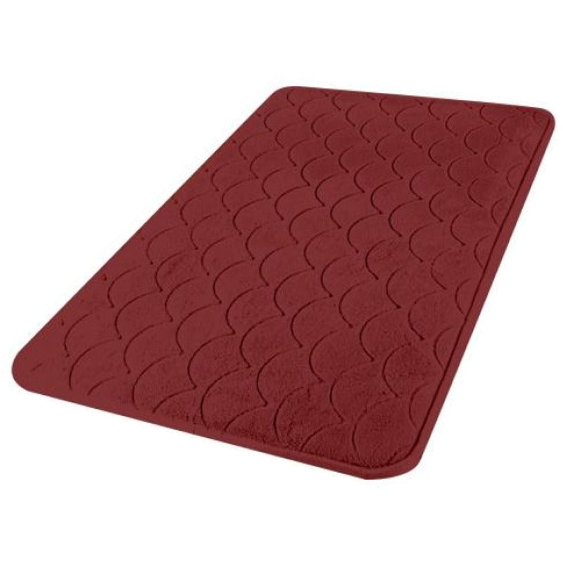 Badkamerkleed/badmat/badkamermat/tapijt/kleedje met anti-slip voor op de vloer in het toilet of badkamer in de kleur donkerrood met afmetingen 50 x 80 cm in een rechthoekige vorm. De badkamermat is gemaakt van memory foam(kunststof), hierdoor is de mat zacht, kan voldoende water absorberen en voelt dit lekker warm aan je voeten. De mat heeft een vrolijk wolken patroon. Stevige kwaliteit matten/badkamerkleedjes voor op de vloer van uw badkamer. Merk: Urban Living.
