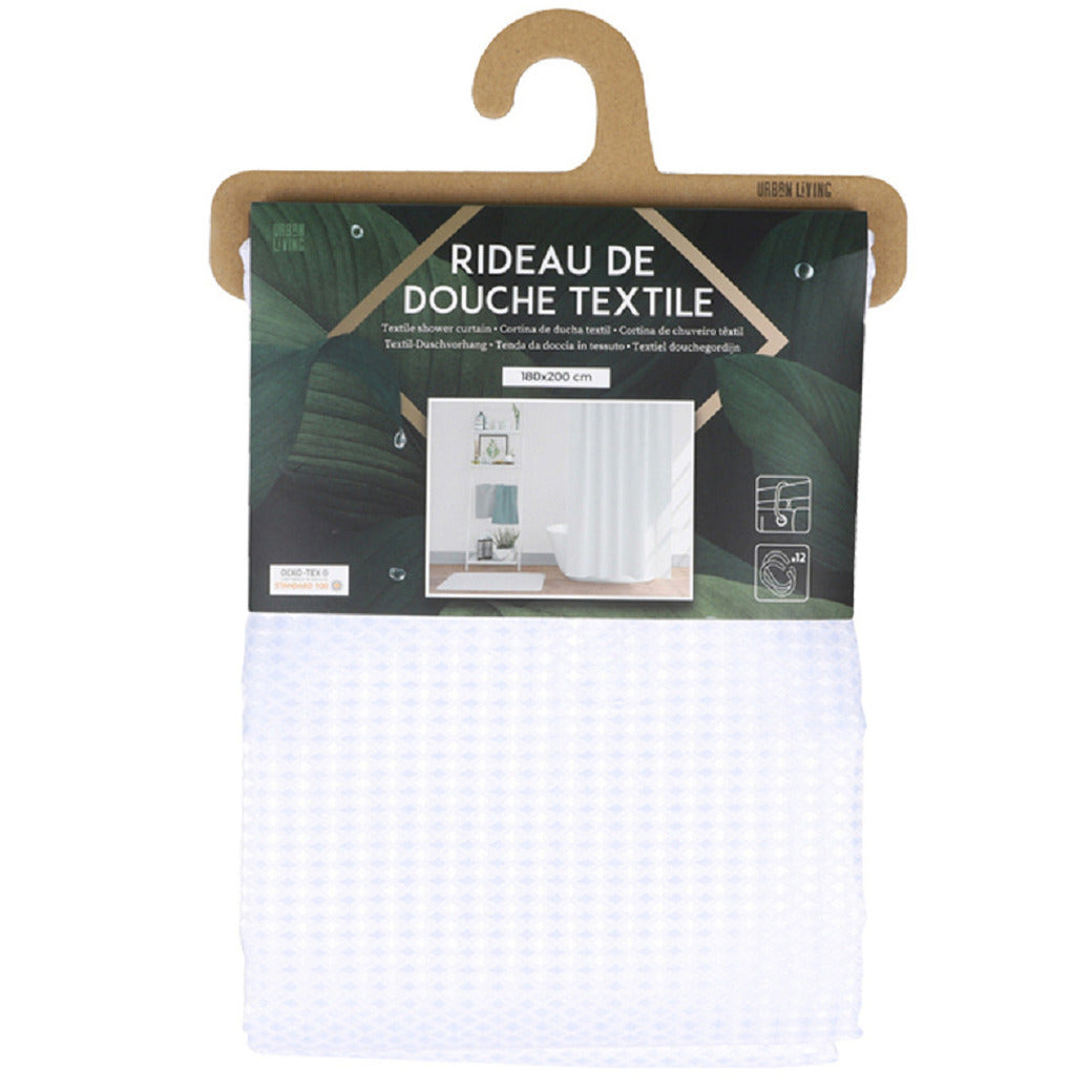 Urban Living Douchegordijn met ringen - wit met relief - 180 x 200 cm