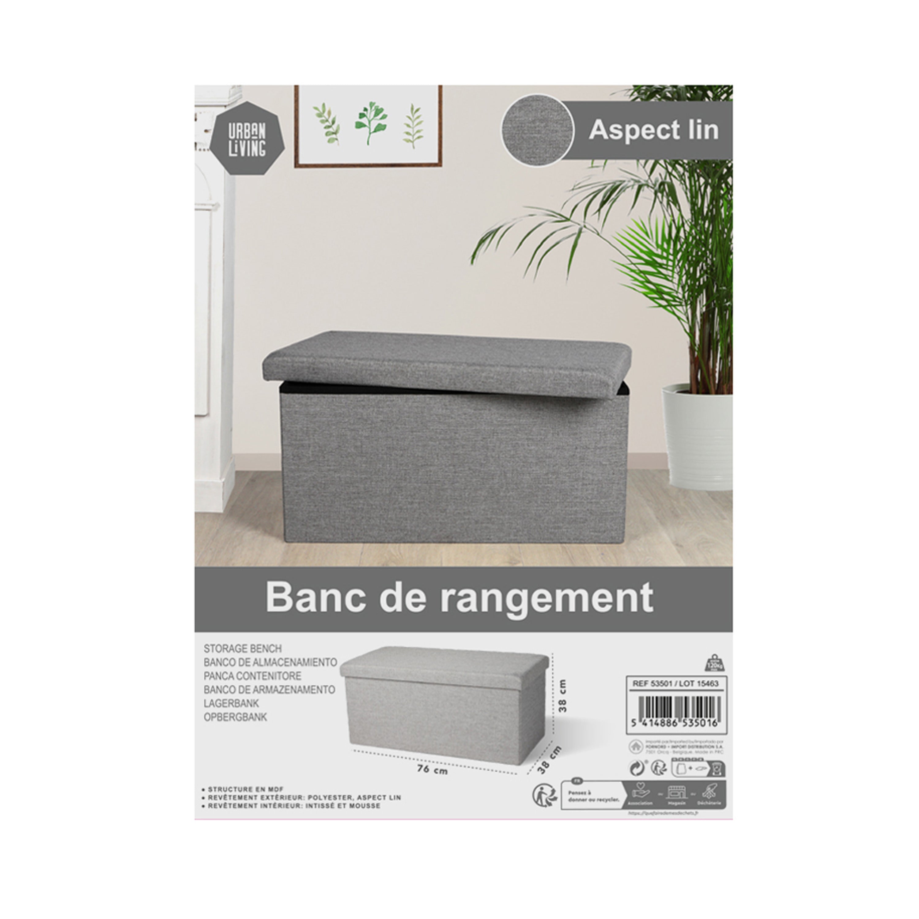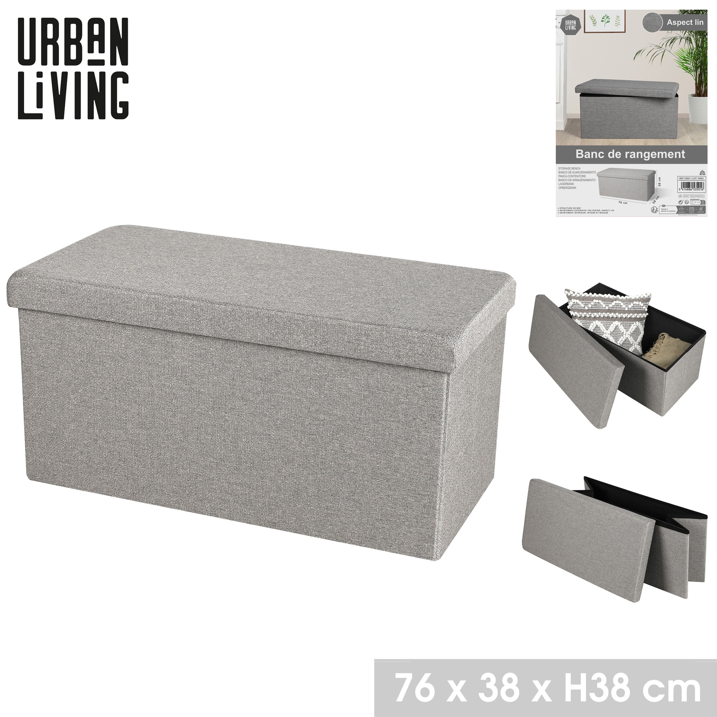 Urban Living poef|hocker|opbergbox - grijs - mdf - 76 x 38 x 38 cm