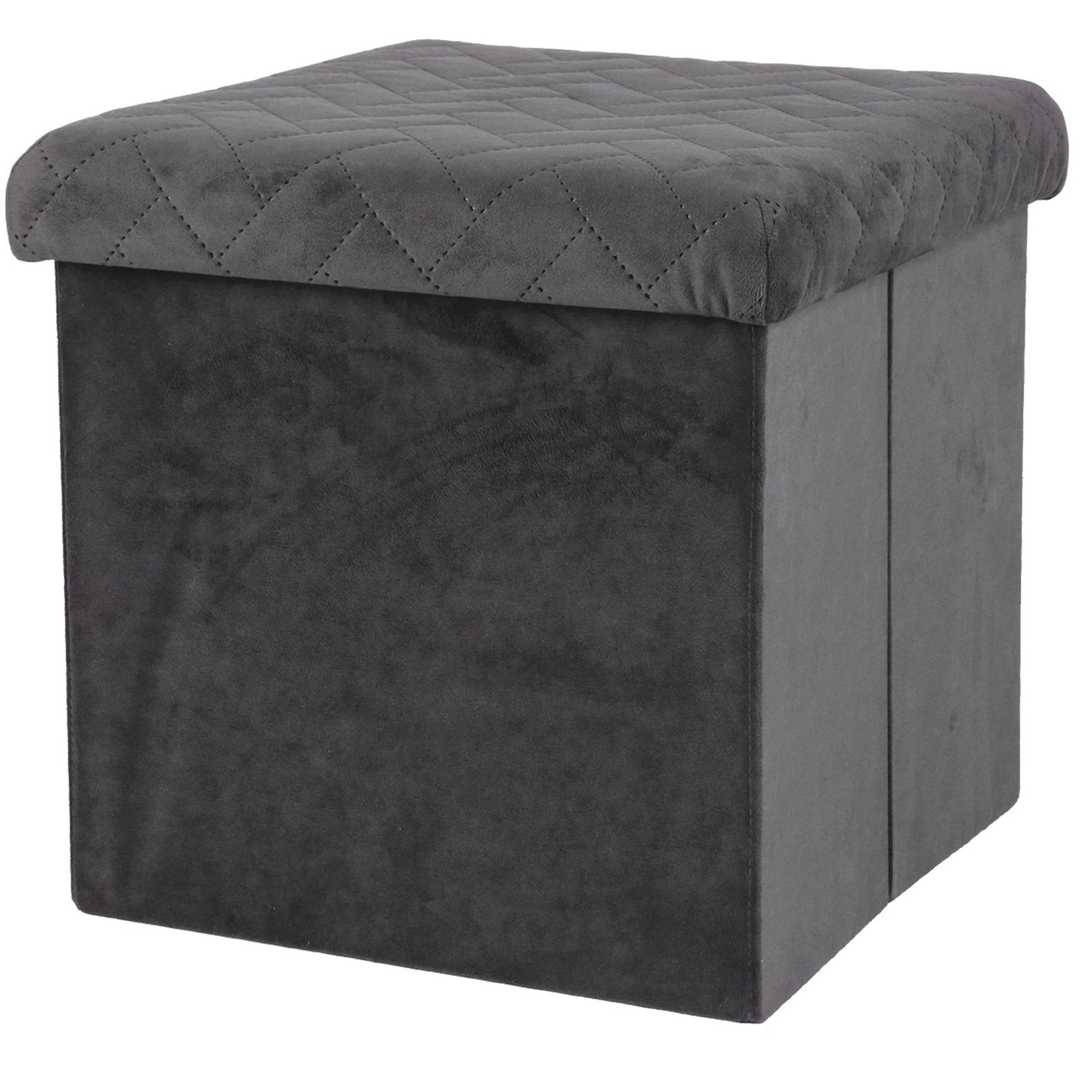 Urban Living poef|hocker|opbergbox - velvet donkergrijs - mdf - 38 x 3