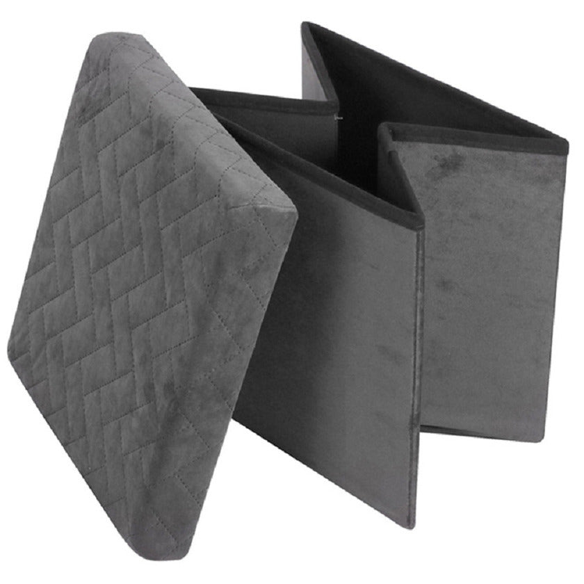 Zit poef krukje met opbergruimte waar je ook op kan zitten. Deze opvouwbare poef, ook wel een hocker genoemd is ideaal voor elk huishouden. De poef heeft een afneembare deksel, geeft je extra opbergruimte en is tevens te gebruiken als voetenbankje. Bespaar ruimte door bijvoorbeeld speelgoed of dekens erin op te bergen of de poef als zitplaats te gebruiken. Een mooie aanvulling voor in huis. Kleur: velvet donkergrijs. Materiaal: polyester stof en mdf. Afmeting: ca. 38 x 38 x 38 cm. Makkelijk weer in te klappen en weg te leggen.