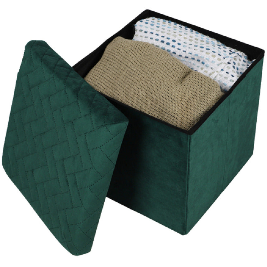Urban Living poef|hocker|opbergbox - velvet donkergroen - mdf - 38 x 3