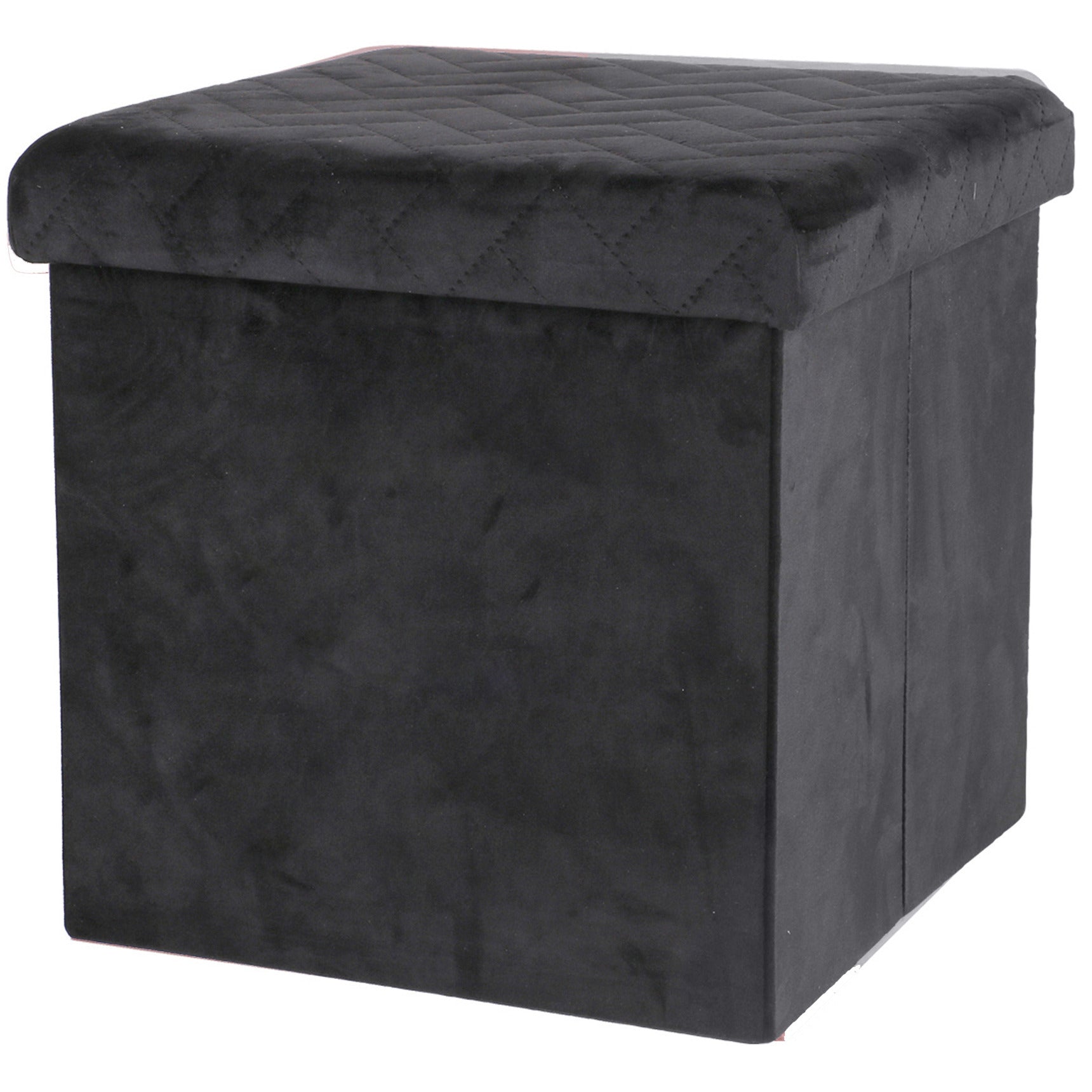 Urban Living poef|hocker|opbergbox - velvet zwart - mdf - 38 x 38 cm