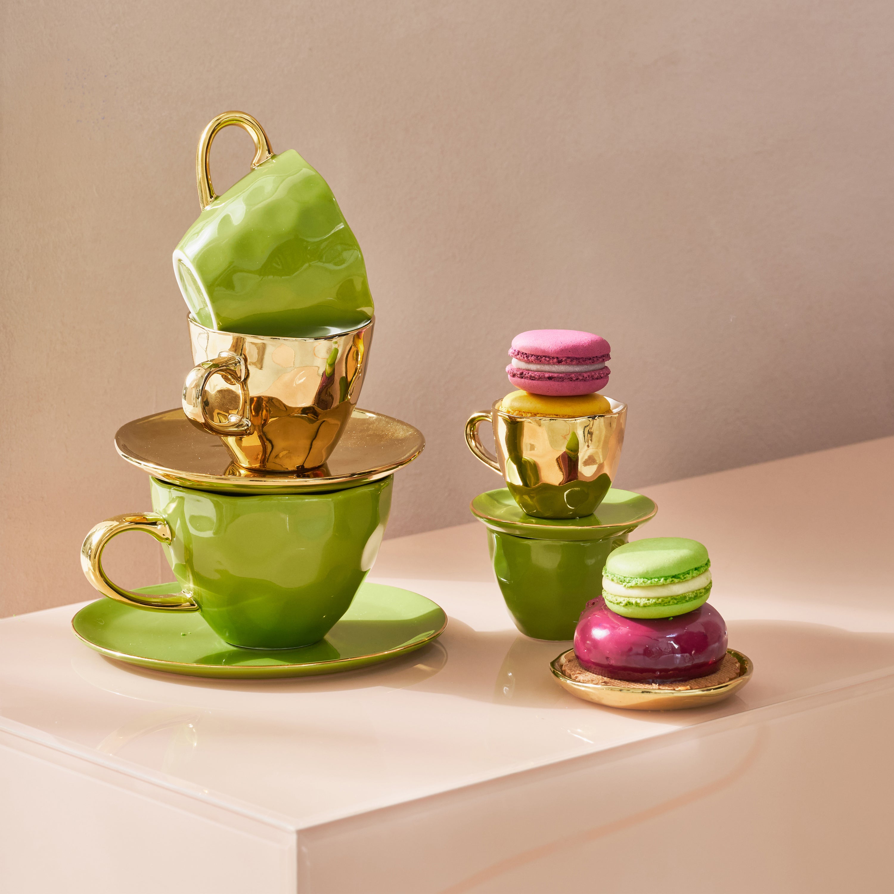 - Tip: was het kopje met de hand om het handgeschilderde goud te beschermen