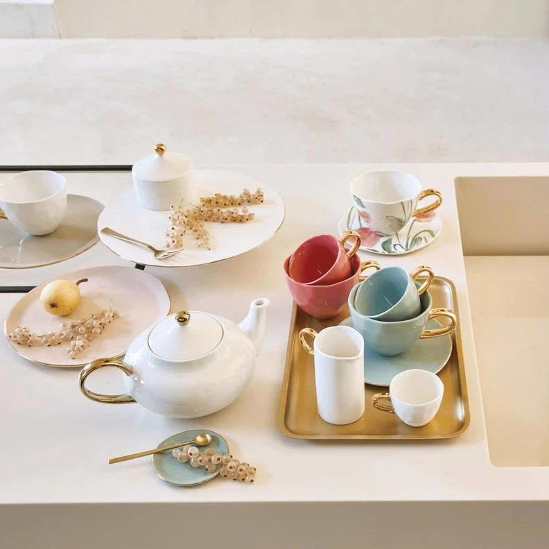 - Tip: was het kopje met de hand om het handgeschilderde goud te beschermen