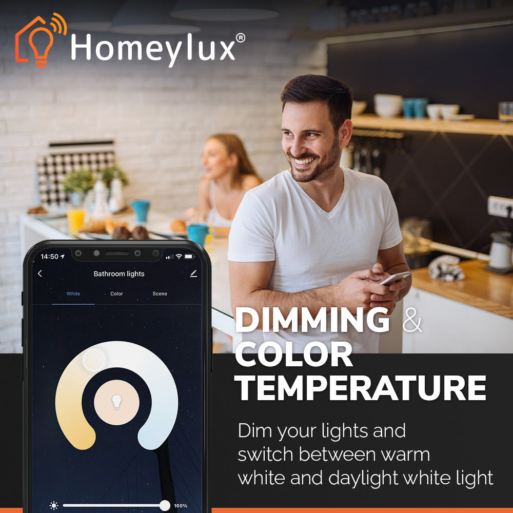 - Deze smart lampen verbruiken slechts 4,5 Watt en produceren hiermee 345 Lumen aan licht.