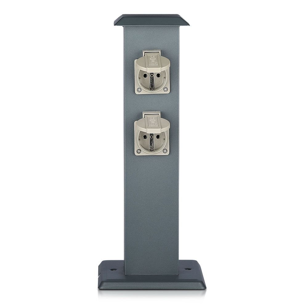 Altijd een stopcontact beschikbaar Elektrisch gereedschap, verlichting of andere apparaten sluit je voortaan eenvoudig buiten aan op de tuinpaal met stopcontacten. De tuinpaal is uitgerust met vier geaarde stopcontacten met afdekklep. De donker grijze RVS tuinpaal is eenvoudig op diverse ondergronden te monteren. Doordat de tuinpaal weersbestendig is, is hij veilig buiten te gebruiken. Geen verlengsnoeren of haspels meer nodig met de V-tac tuinpaal.