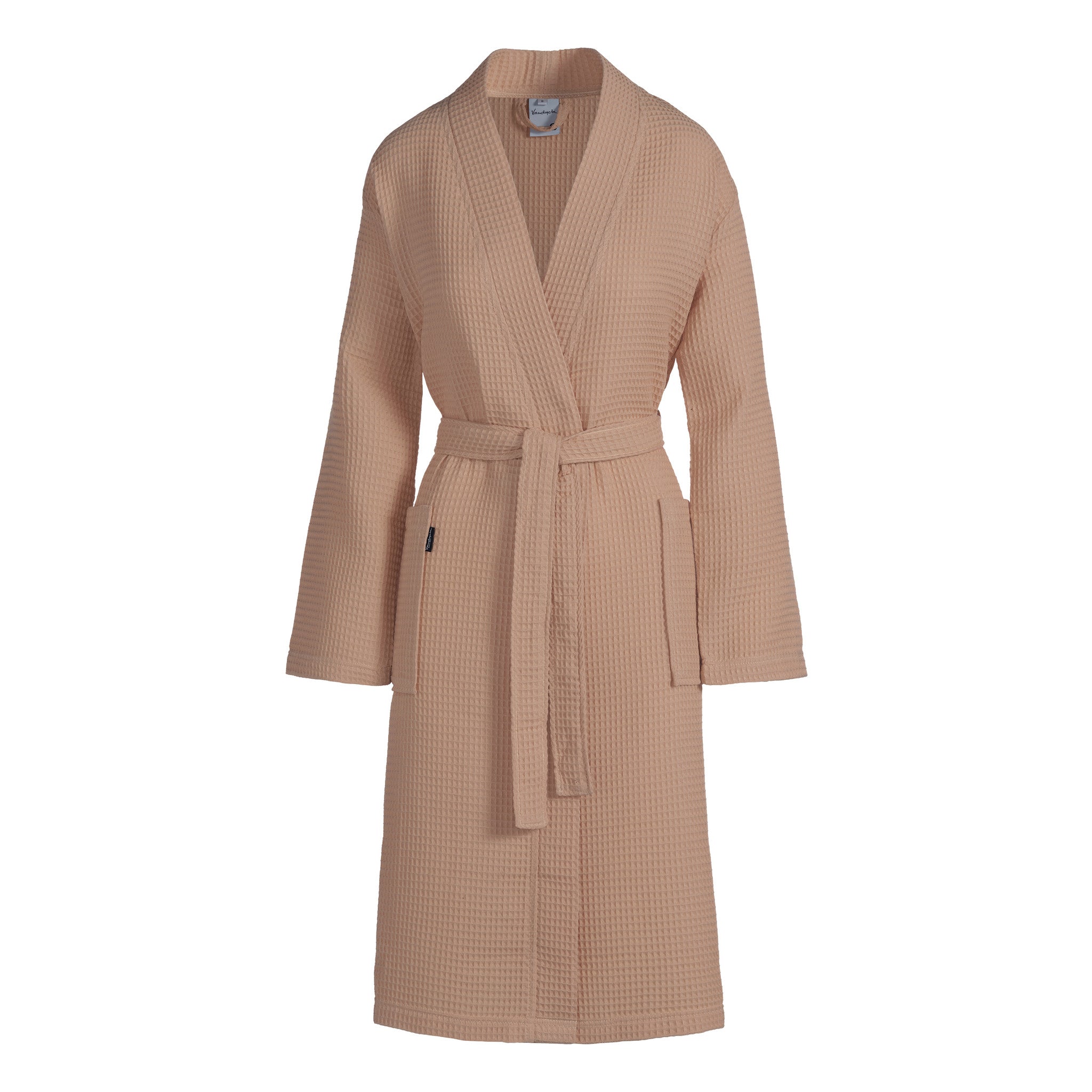 Specificaties: - Kimonokraag - Ceintuur - Diepe zakken - Lengte tot onder de knie - Luchtige, dunne stof (wafelpique) Maatadvies: Deze badjas is verkrijgbaar in de maten XS, S, M, L, XL en komt overeen met de confectiematen. Wasvoorschriften: Machinewasbaar op 40 graden Drogen op een lichte stand