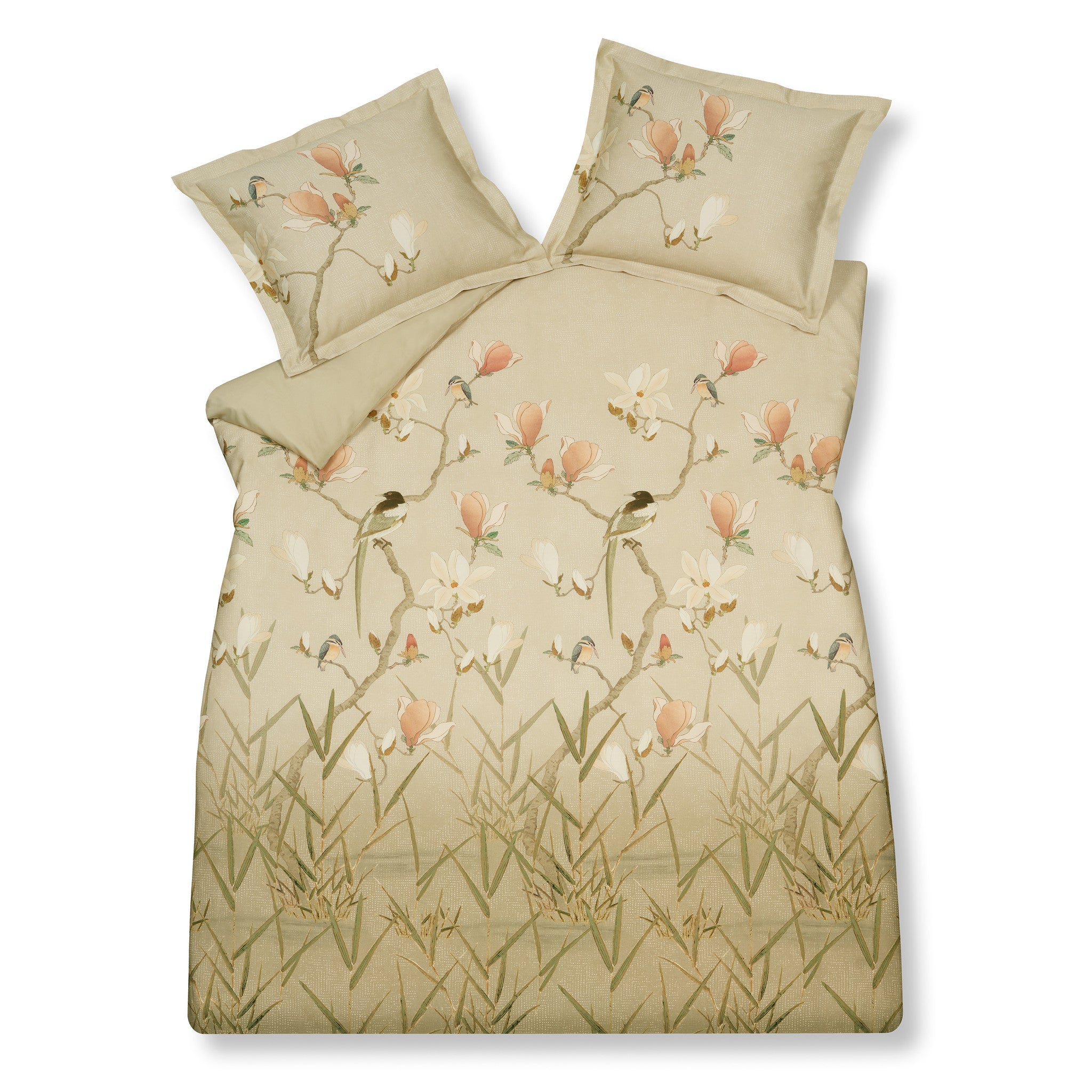 Het Vandyck dekbedovertrek Magnolia Sky (SASA21208) is gemaakt van satijnkatoen met een digitale print van magnolia bloemen en vogels op een tak in zachte kleuren naturel, groen en praline. Maat 240 x 200/220 cm (lits jumeaux dekbedovertrek met 2 kussenslopen) Kleur Natural-086 Kwaliteit 100% satijnkatoen Kussensloop voorzien van Oxford rand Print Bovenzijde: Print Magnolia Sky Onderzijde: Uni gekleurd Instopstrook Ja (ruime flessenhals) Wasvoorschriften Machinewasbaar op 40 graden (donkere kleuren) of 60 graden (lichte kleuren) Drogen op lage temperatuur Heet strijken