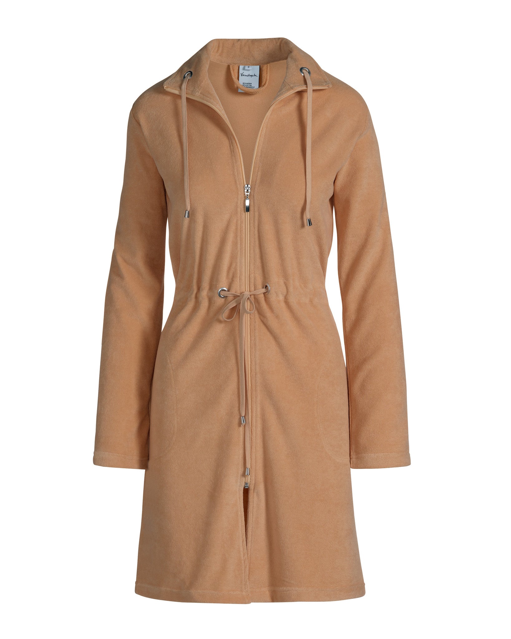 - Met 2 diepe steekzakken, een ritssluiting en een trekkoord bij de taille is het een praktische badjas waar je lekker in kunt bewegen.