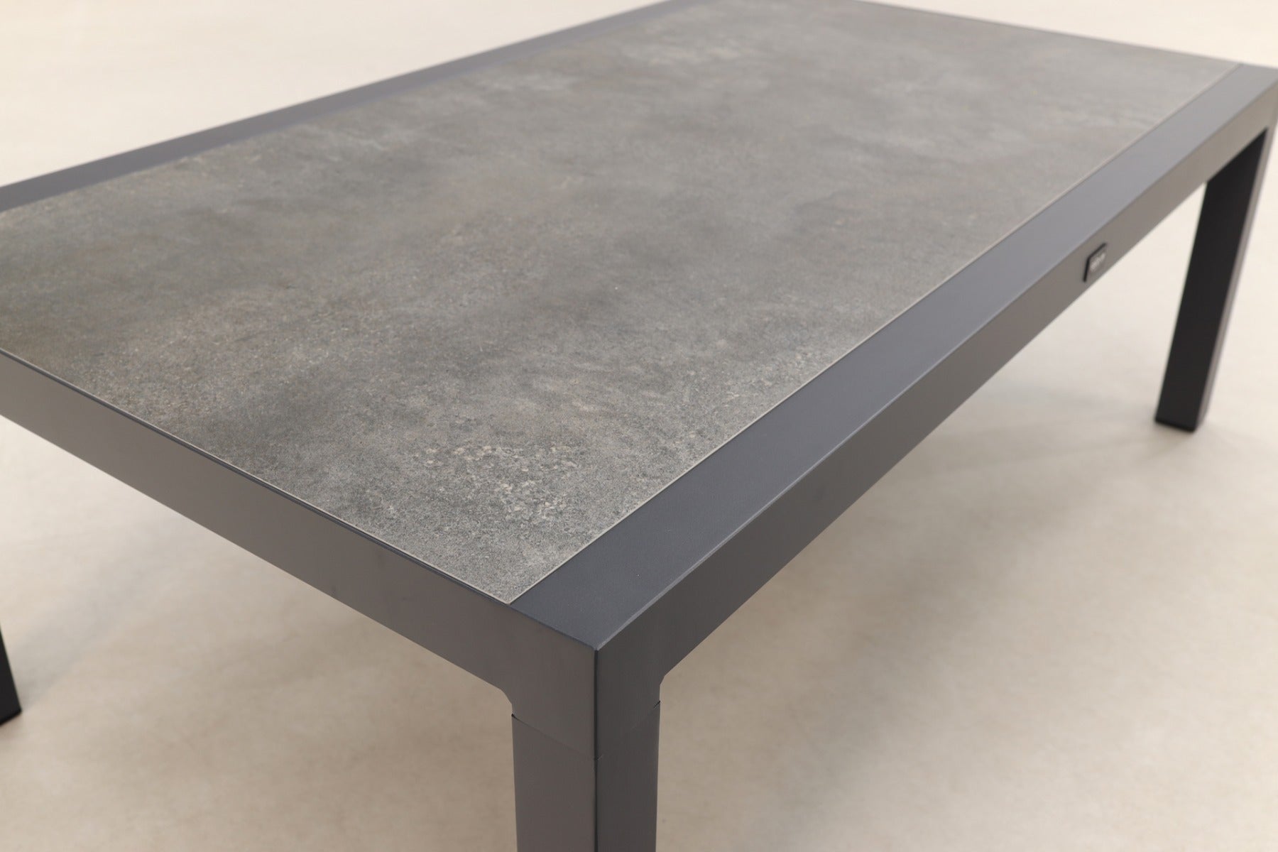 De Atlanta loungetafel heeft een stevig frame van aluminium en is afgewerkt met een antracietkleurige coating. Deze coating zorgt ervoor dat het frame kras- en stootvast is. Aluminium heeft als voordeel dat het licht in gewicht is, niet kan verroesten en weinig onderhoud nodig heeft. Het tafelblad is gemaakt van keramiek. Keramiek is een harde steensoort welke krasvast is, bestand is tegen hitte en UV licht. Perfect materiaal om te gebruiken als tafelblad. Het keramiek kun je eenvoudig schoon maken met een sopje en een zachte spons.