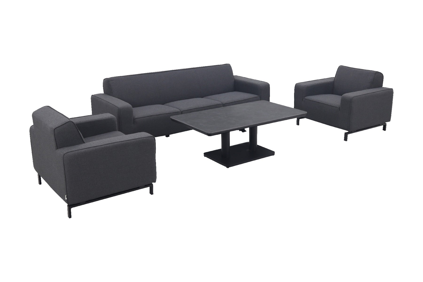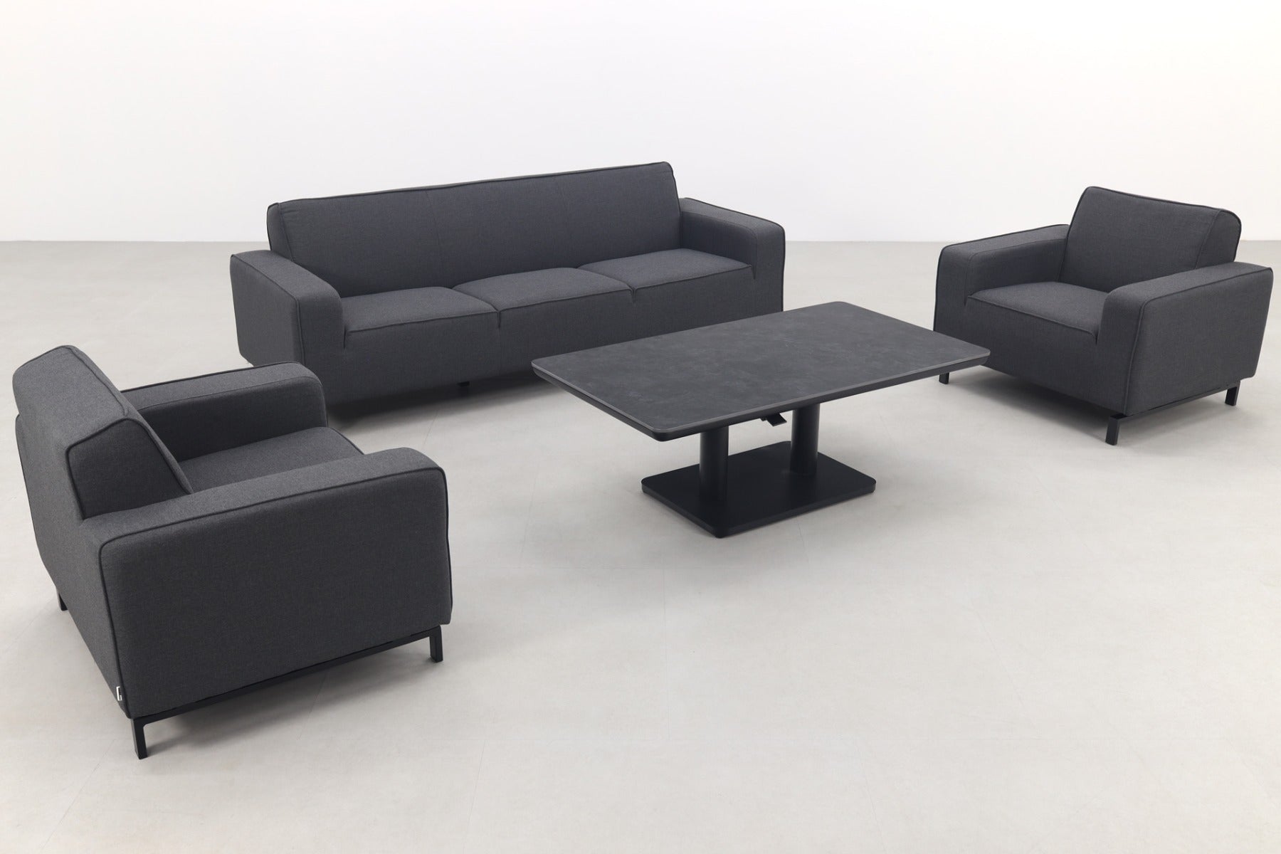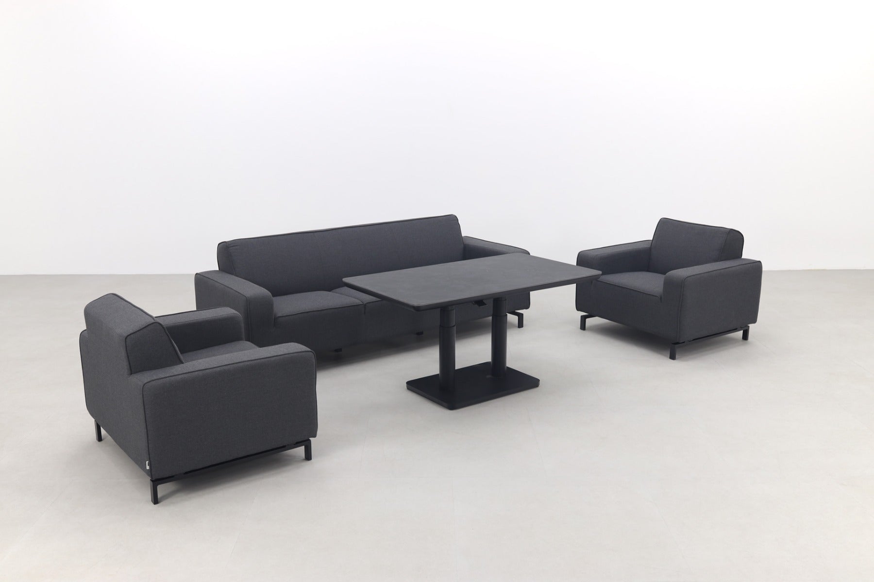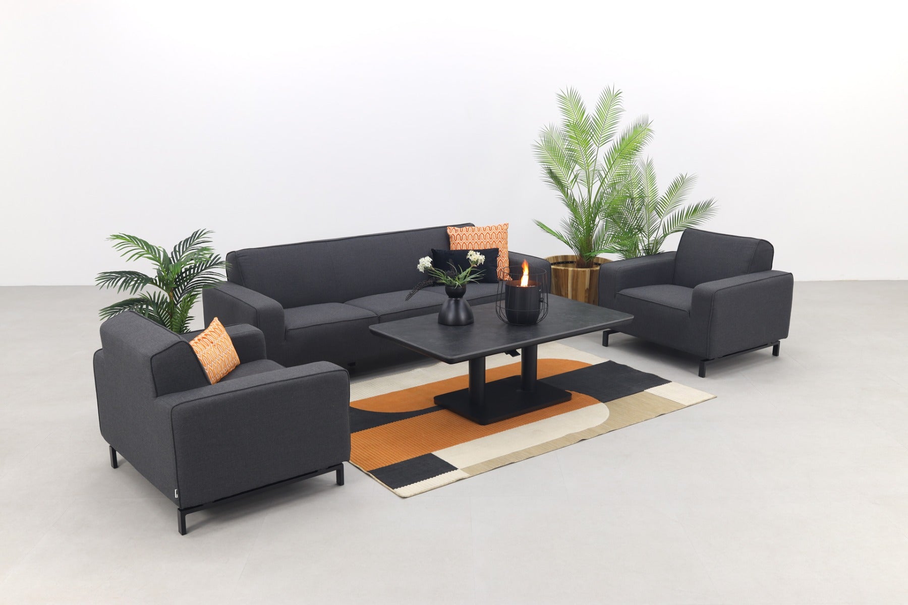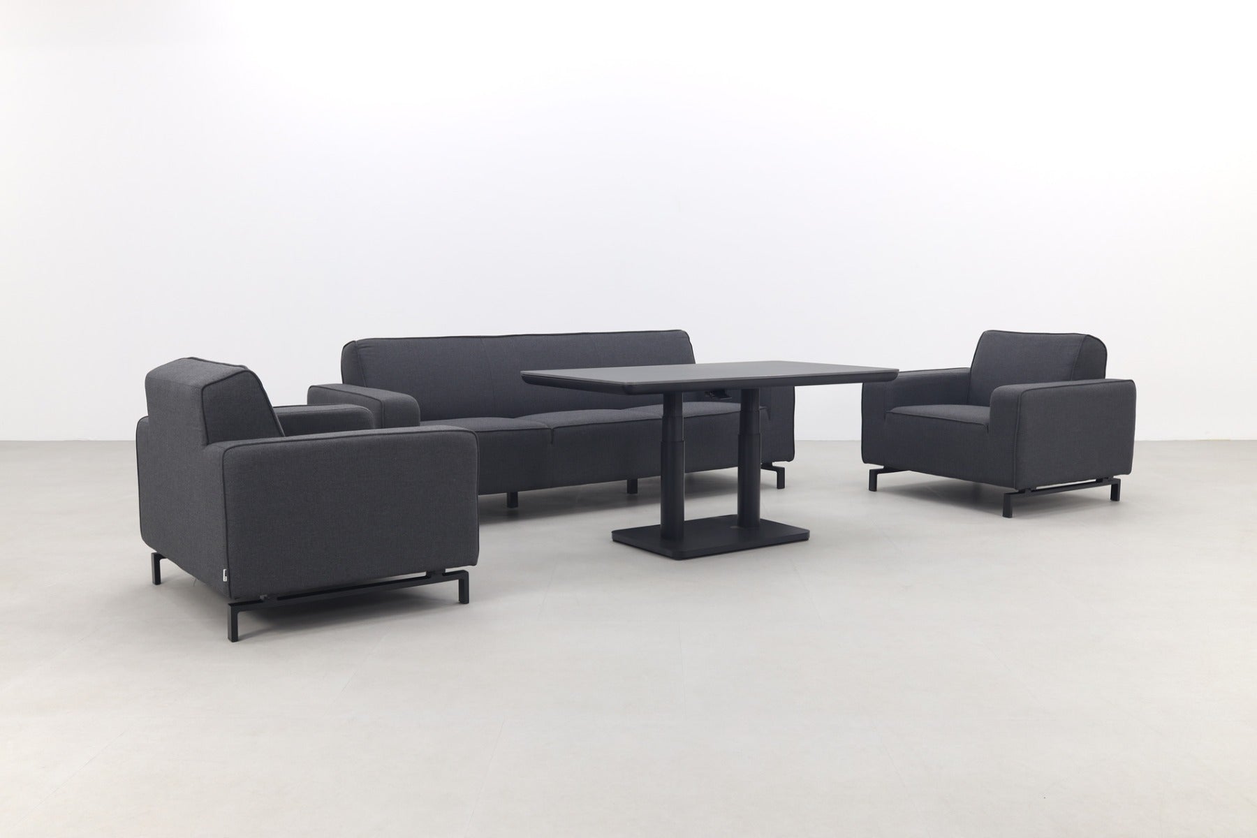 2x Boavista loungestoel - Sooty 1x Boavista loungebank 3-zits - Sooty 1x Medina verstelbare loungetafel - 140x80 cm.