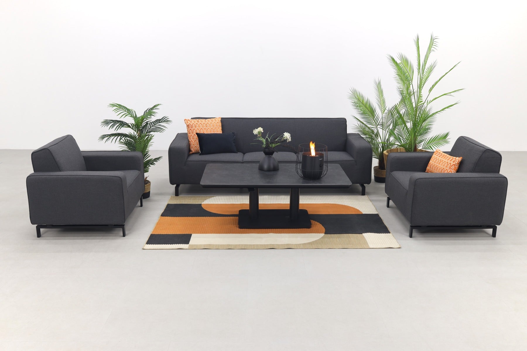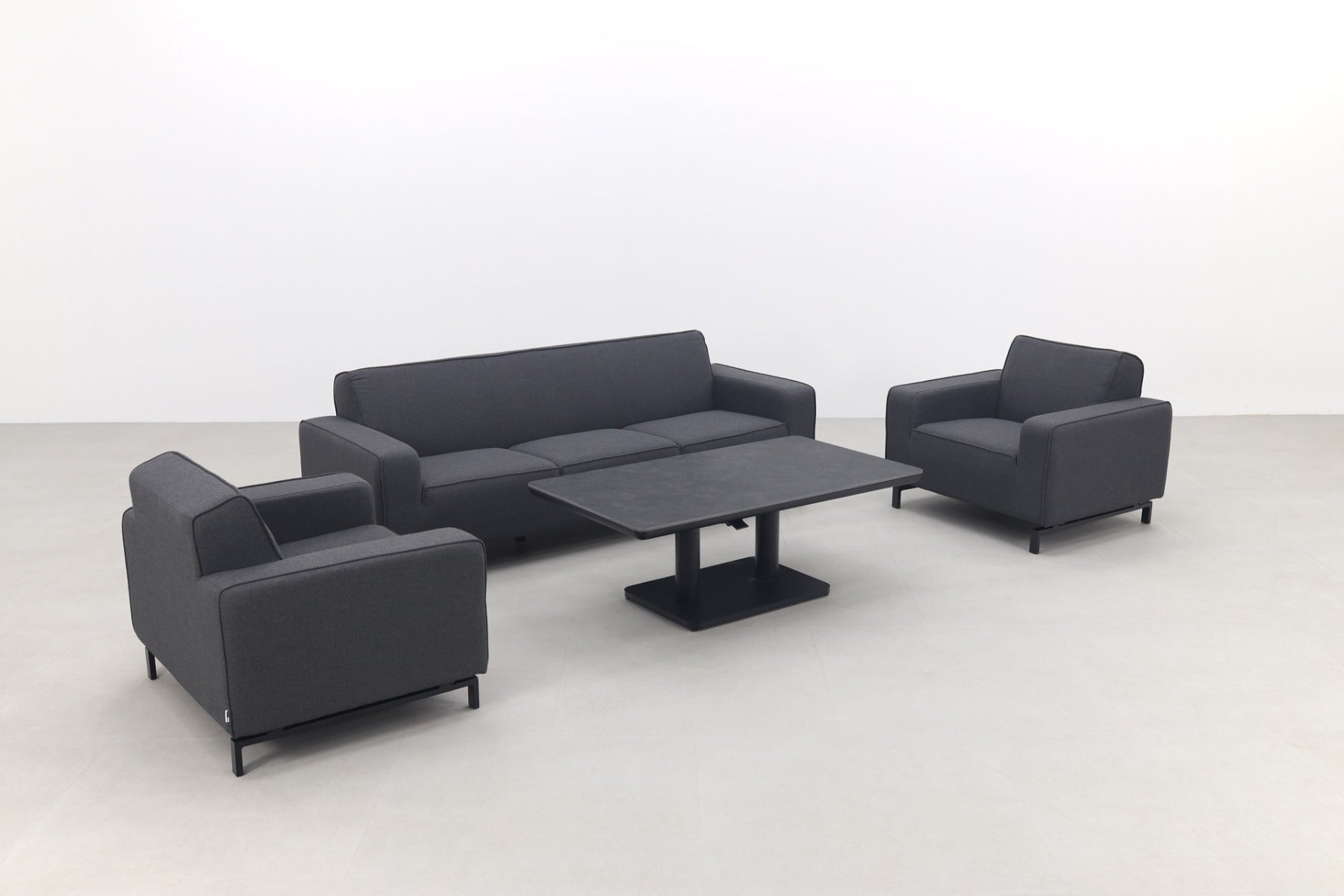 Ontdek de veelzijdige Boavista serie, een ideale loungeset voor binnen én buiten! Deze prachtige collectie omvat twee heerlijk zittende loungestoelen, een ruime loungebank voor drie personen en een stijlvolle loungetafel van 140x80 cm. De tafel, verstelbaar in hoogte, heeft een elegant zwart aluminium frame en een keramisch tafelblad met een stenen motief. Dankzij de verstelbare hoogte transformeer je moeiteloos de tafel van een loungetafel naar een diningtafel, waardoor je de perfecte setting creëert voor elke gelegenheid. Geniet van het ultieme comfort en weerbestendigheid met de Boavista loungeset, en bestel gemakkelijk online!