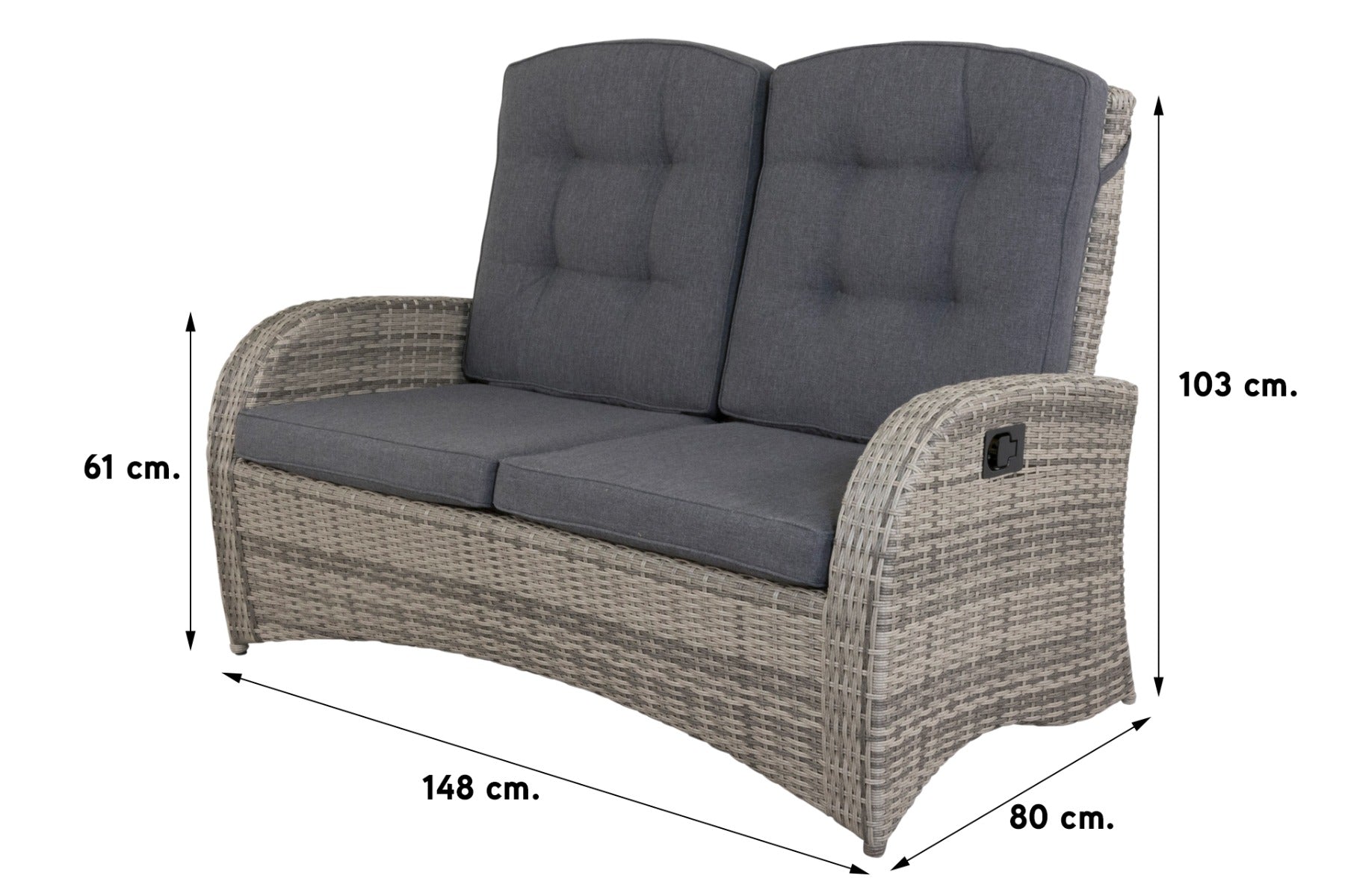 - Weerbestendig: Duurzaam aluminium en wicker.