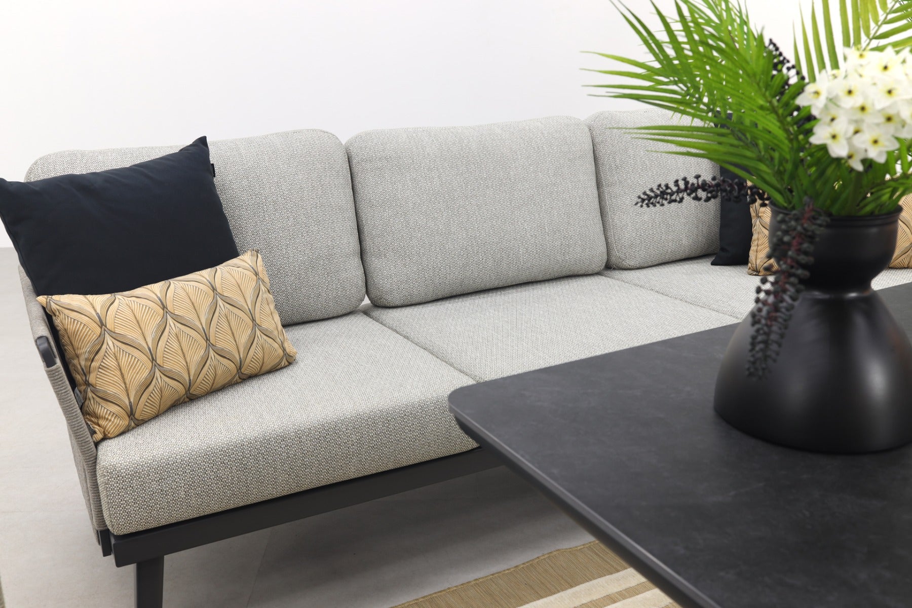 2x Durban loungestoel 1x Durban 3-zits loungebank 1x Medina up&down tafel royal grey