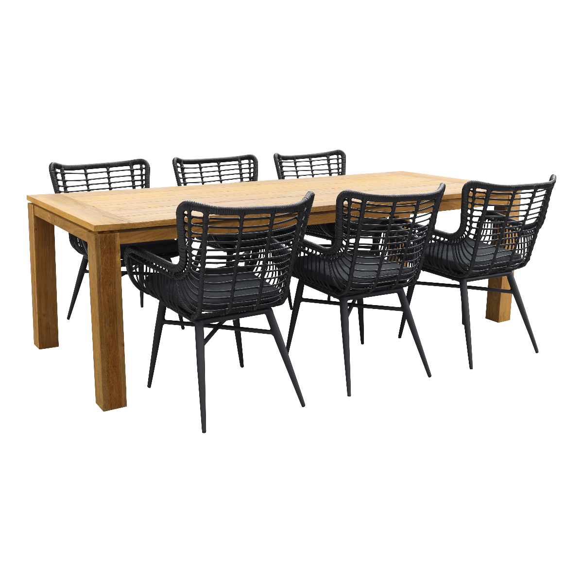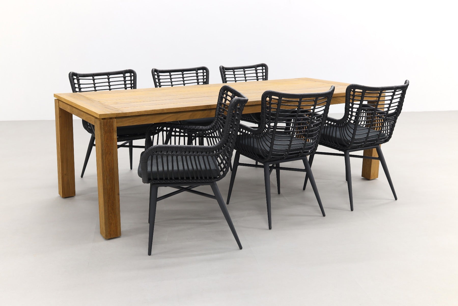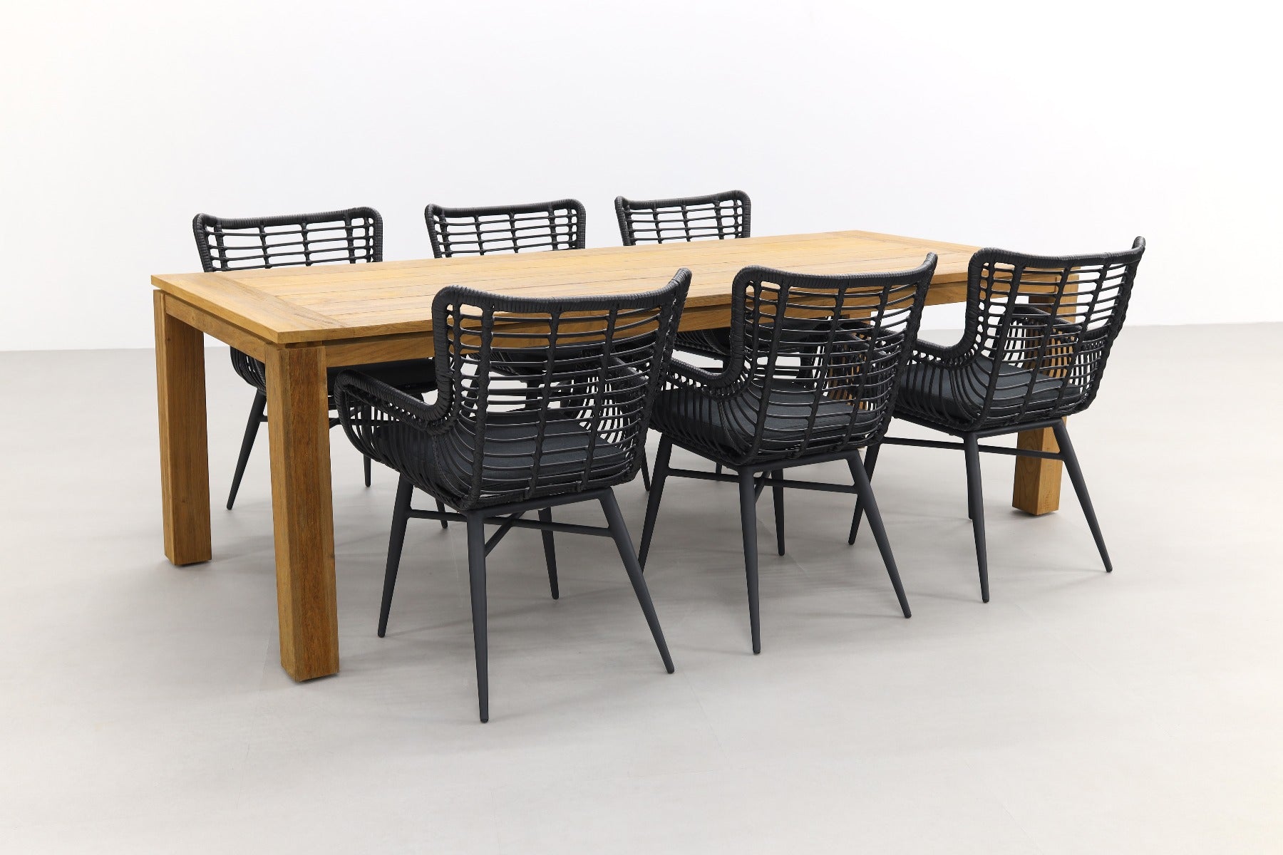 6x Jasmine dining tuinstoel - Black 1x Rome tuintafel 240x100 cm. - Natural Brown