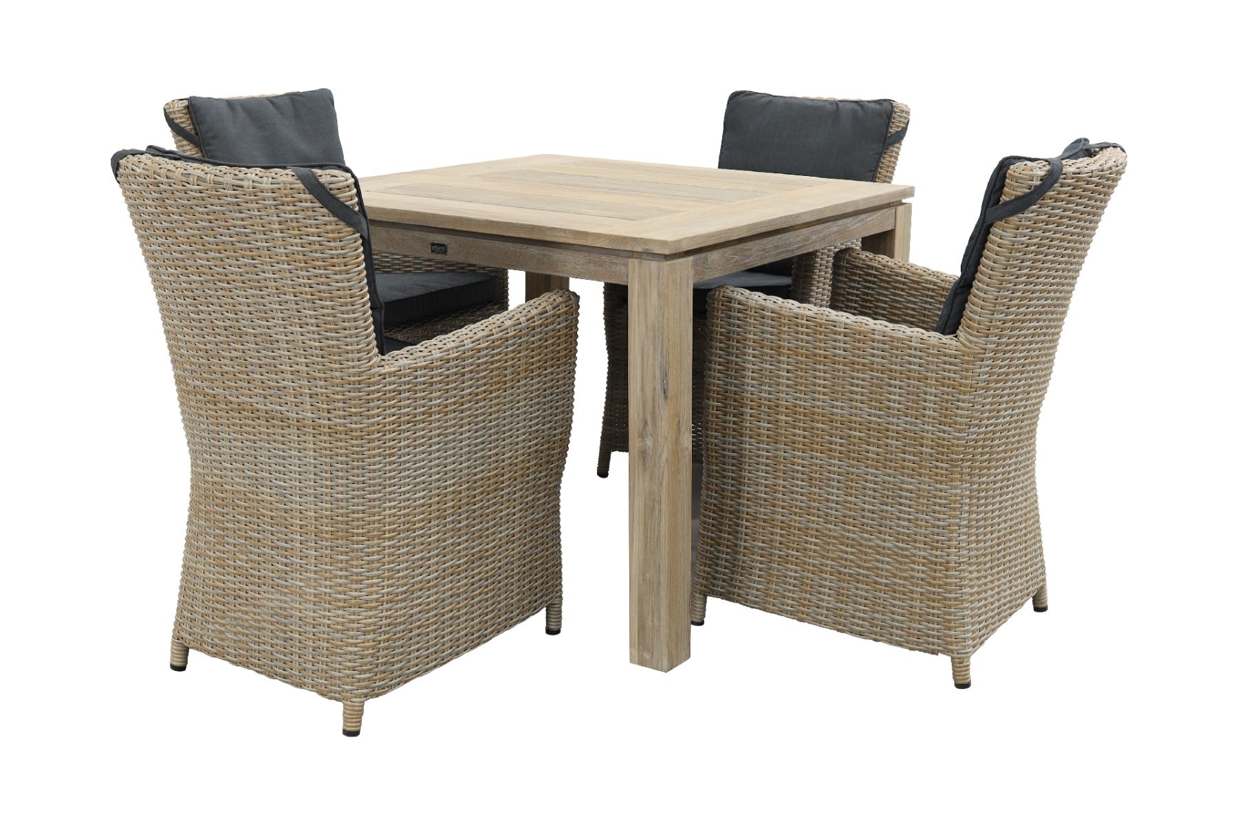 4x Mante tuinstoel - Dessert 1x Rome tuintafel 100x100 cm. - Grey