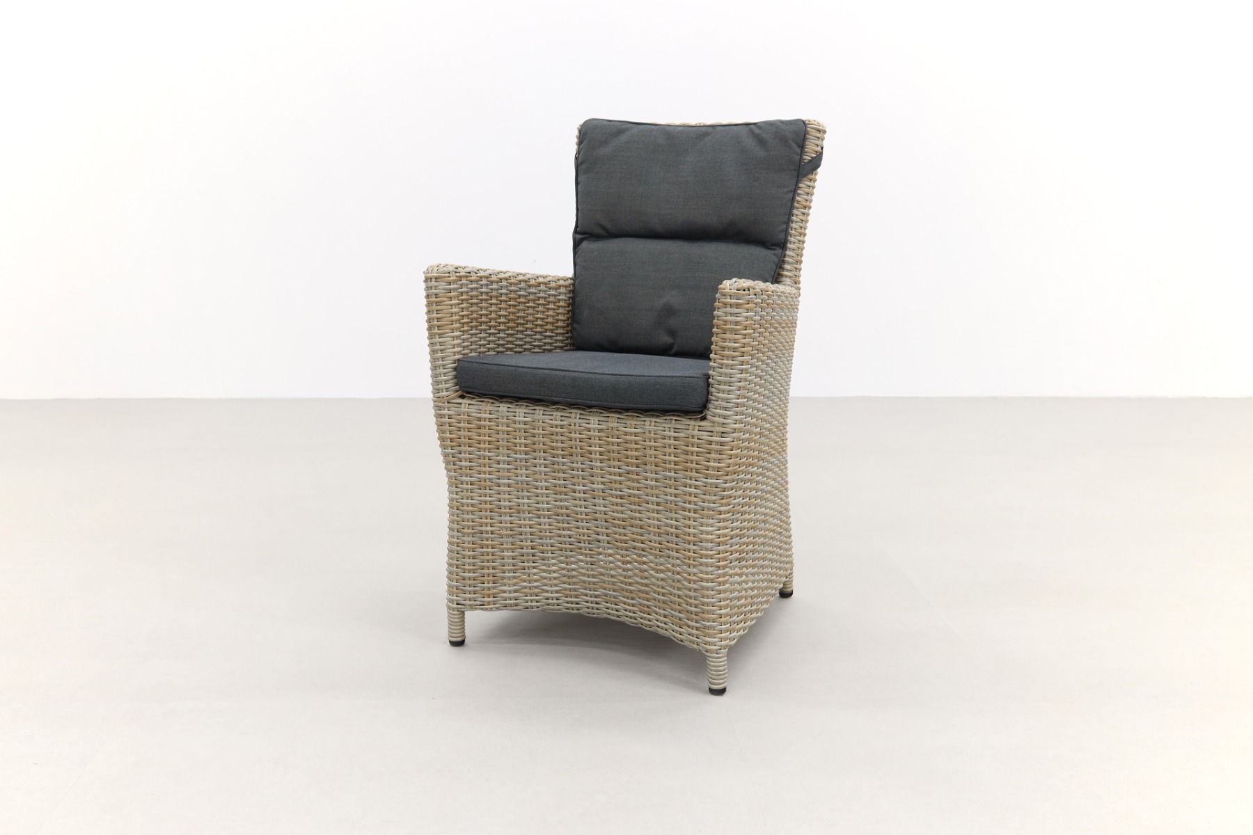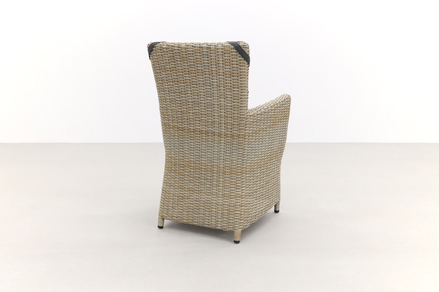 De wicker tuinstoel Mante is een kunststof gevlochten tuinstoel. De diningstoel heeft een half rond kunststof vlechtwerk in de frisse kleur Dessert. De stoel wordt geleverd inclusief zit en rugkussens. De Mante dining tuinstoel heeft een aluminium frame met daarom heen een Kunststof vlechtwerk. Het vlechtwerk is halfrond en heeft de kleur Paloma grijs. Tuinstoelen met een aluminium frame en een wicker vlechtwerk zijn erg onderhoudsvriendelijk. Aluminium heeft als voordelen, het gewicht, de sterkte maar ook dat het niet kan gaan roesten. Deze stoel van wicker heeft een actieve zithouding wat de stoel erg comfortabel maakt. Het vlechtwerk geeft de stoel een frisse en luxe uitstraling. De dining tuinstoel wordt geleverd inclusief bijhorend zit en rugkussen. Dit kussens heeft aan de achterzijde een rits zodat u het kussen koud kunt wassen.