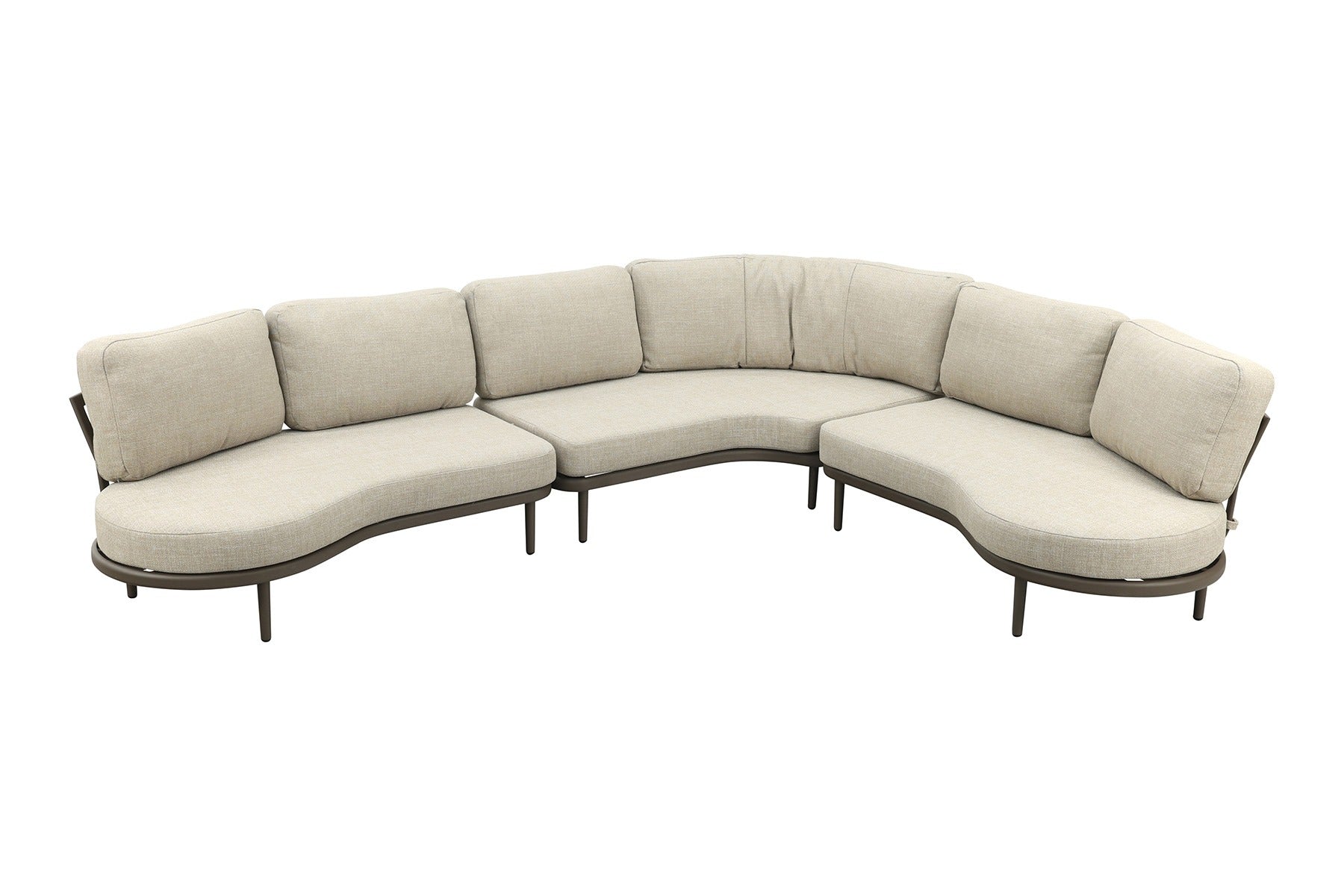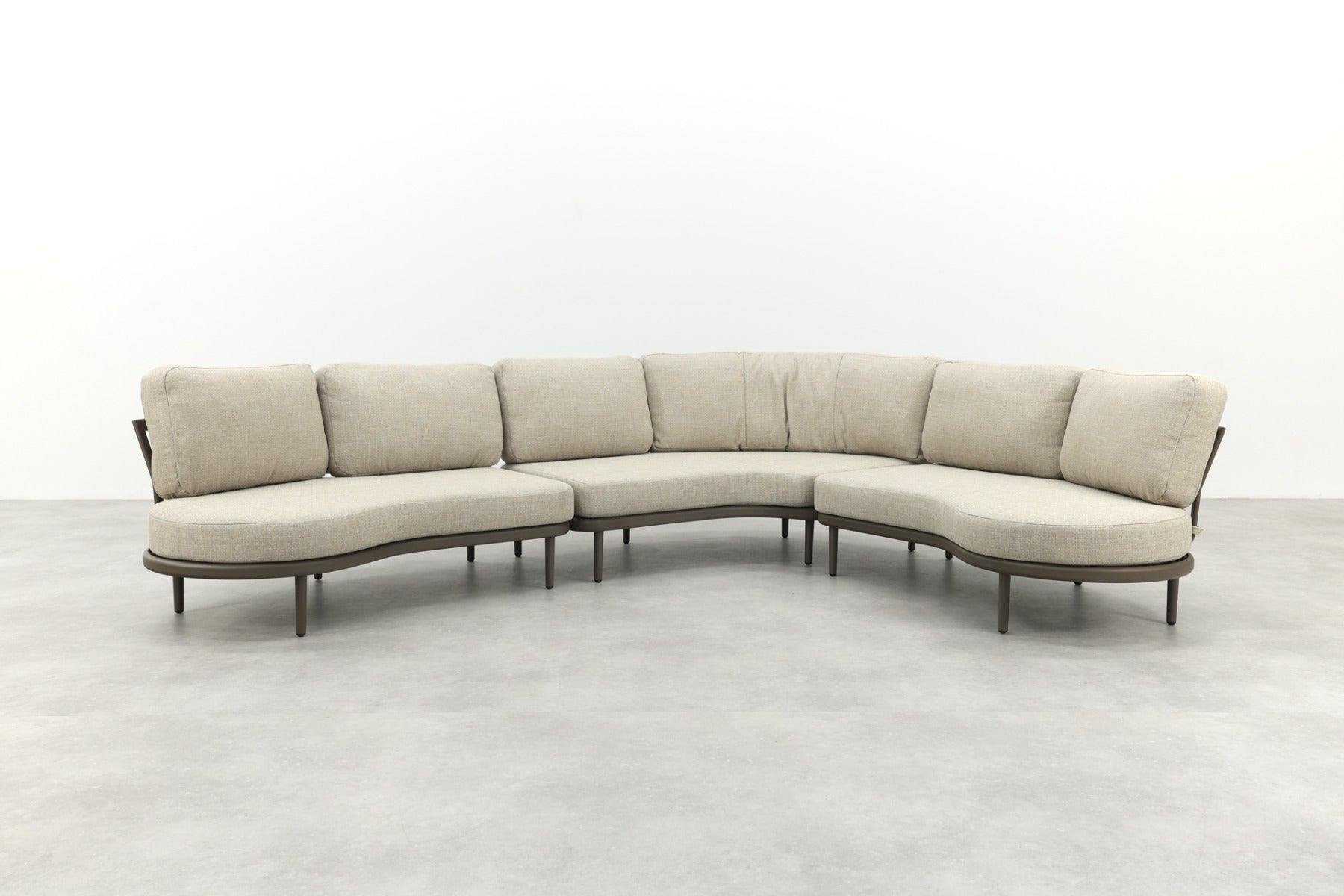 De Saranda is niet alleen mooi, maar ook slim ontworpen. Je kunt het hoekelement eenvoudig links of rechts plaatsen door de poten aan de andere kant te monteren, zo stel je de bank precies af op jouw tuin. Het aluminium frame is licht van gewicht, roestvrij en onderhoudsarm. De Olefin kussens kunnen tegen een regenbui en drogen snel weer op. Voor langere regenperiodes berg je ze het best even droog op.