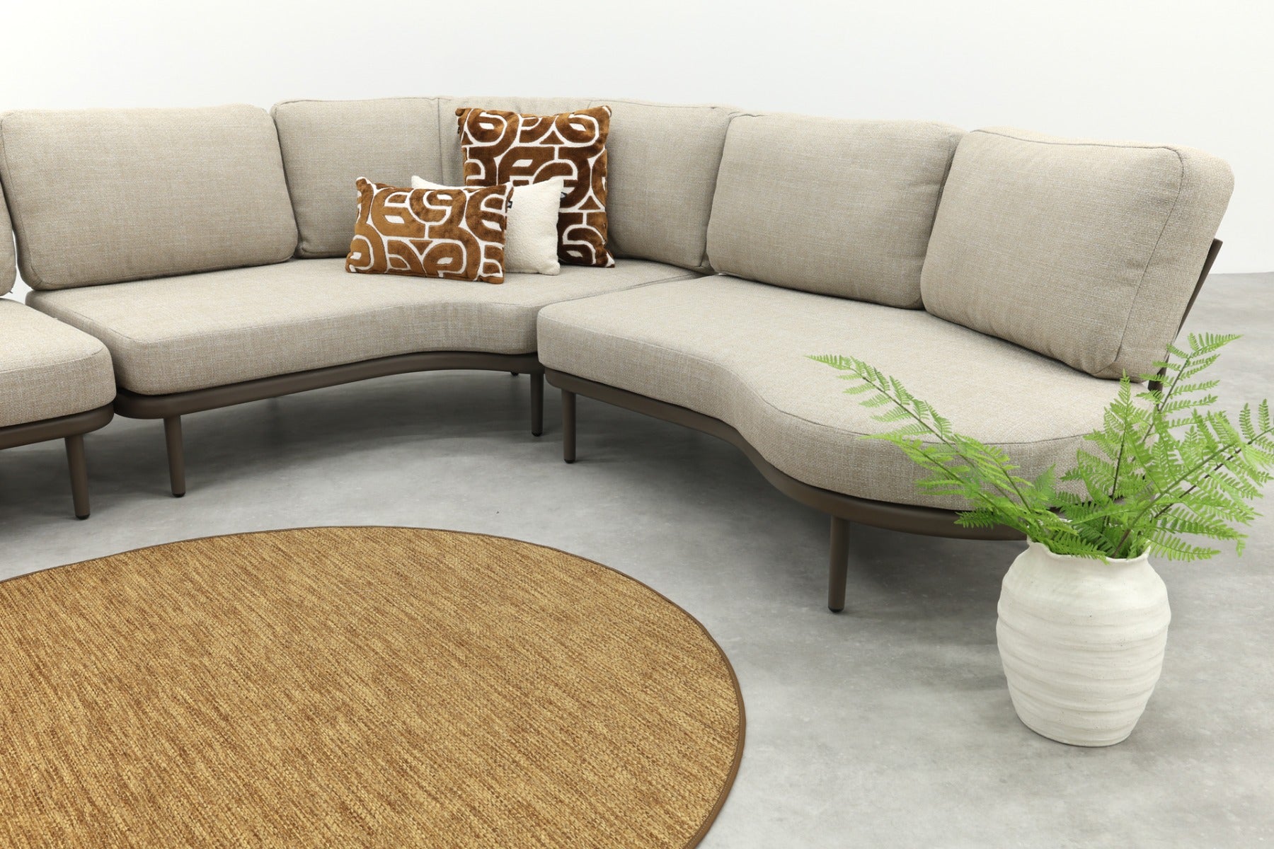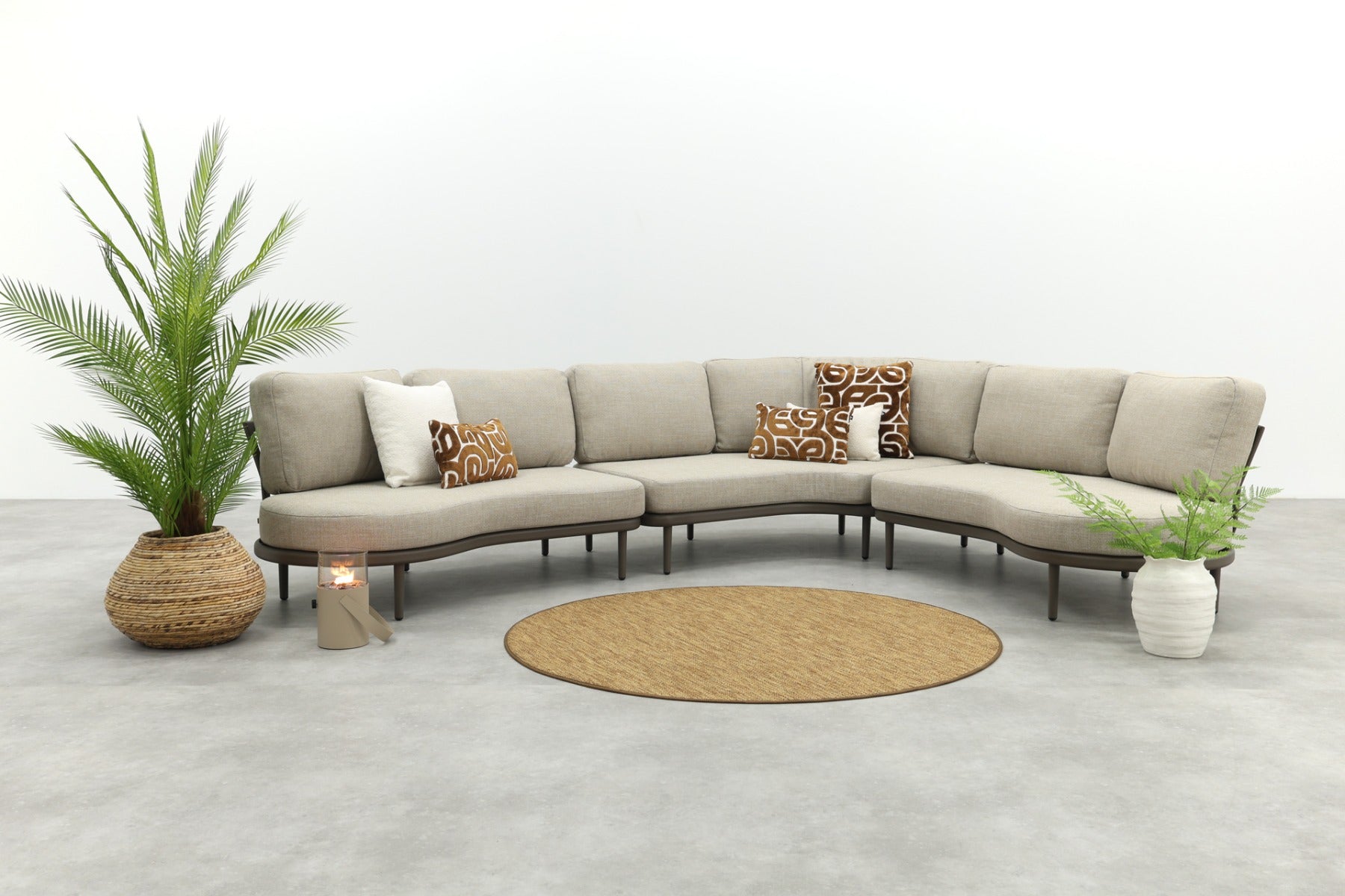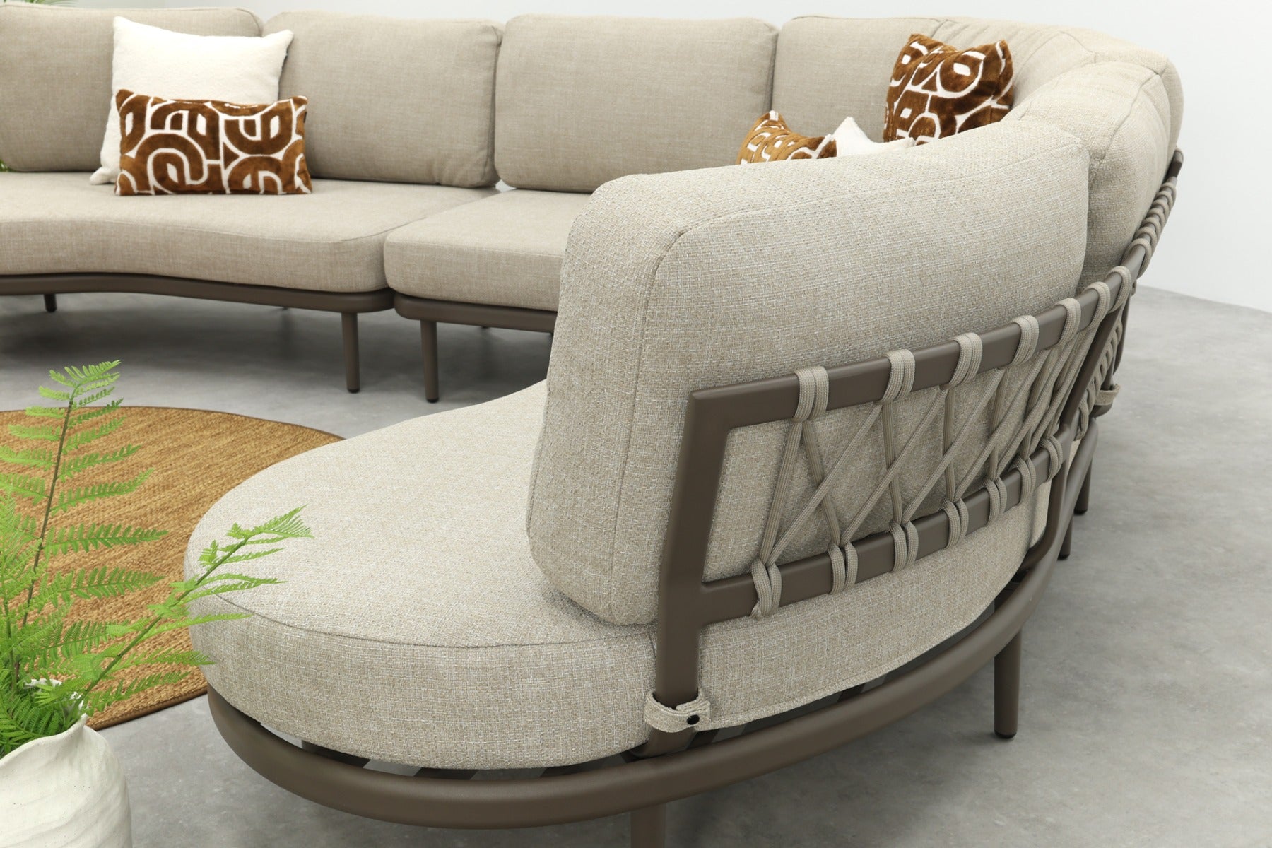 Op zoek naar een loungeset met een bijzondere, luxe uitstraling? De Saranda loungebank combineert een organisch design met een warme terre-kleur, een zachte bruintint die perfect past bij natuurlijke tuinen. De afgeronde vormen en het rope vlechtwerk in de rugleuning geven de set een moderne, uitnodigende look. De bijpassende ‘dusk woven’ kussens zorgen voor een comfortabele zit en een rustige, verzorgde uitstraling. Ideaal voor gezinnen of voor wie graag mensen ontvangt.