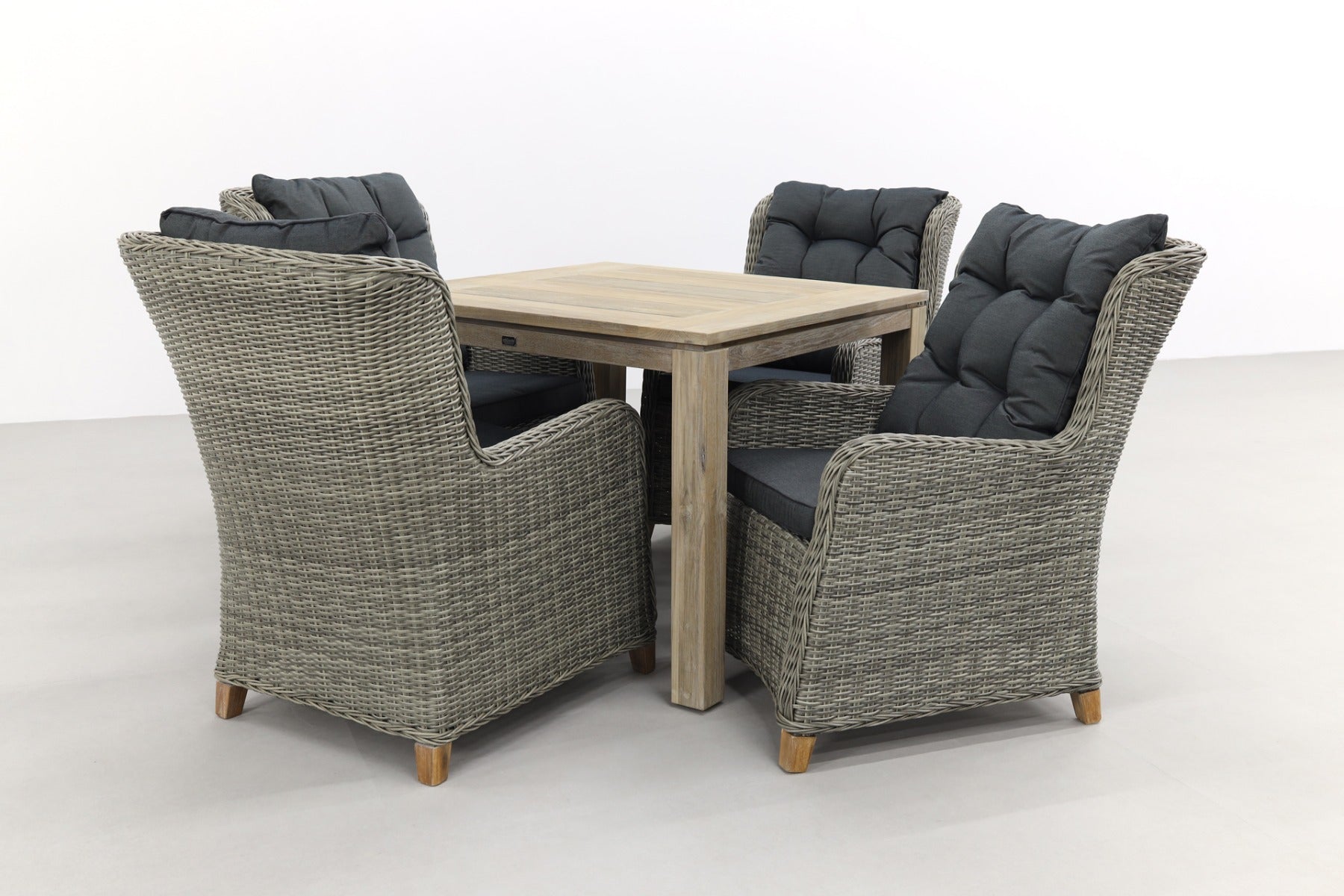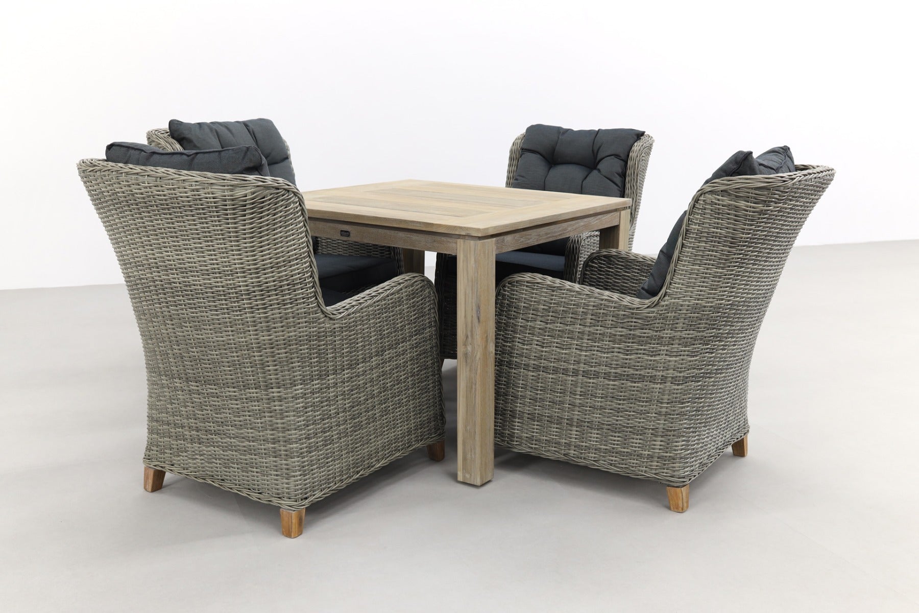 Op zoek naar een luxe tuinset voor een kleinere tuin of balkon? Dan zit je met deze Torino/Rome tuinset helemaal goed! Dat komt niet alleen door de hoge zitcomfort van deze tuinset, ook omdat hij voldoet aan alle eisen. De Rome tuintafel heeft namelijk een afmeting van 100x100 cm. waardoor de tuinset in bijna elke tuin of balkon past. De Torino tuinstoelen hebben een chique uitstraling door het grijze wicker en stijlvolle kussens. De buitentafel Rome past hier perfect bij met het grijze teakhout. Deze tuinset is echt een pareltje om naar te kijk! Waar laat jij deze tuinset stralen? Bestel dan direct online!
