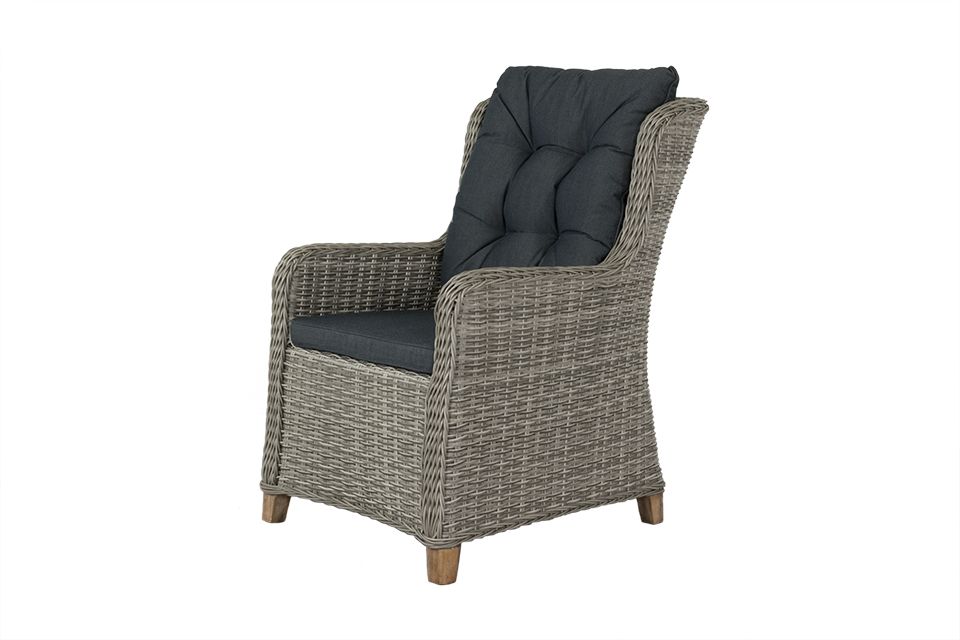 Dining tuinstoel Torino is de stoel met een comfortabel zitcomfort, dit komt door de antraciet kussens welke voorzien zijn van stevige vullingen. De tuinstoel is vervaadigd van een gepoedercoated aluminium frame en een stevig half rond wicker. Dit zorgt ervoor dat de Torino tuinstoel een natuurlijke uitstraling heeft en dat de tuinstoel erg onderhoudsvriendelijk is. De kussens hebben een chique uitstraling doordat zij gecapitonneerd zijn. Wij raden aan om de kussens droog en geventileerd op te bergen wanneer deze niet gebruikt worden. De kussens zijn namelijk niet waterdicht.