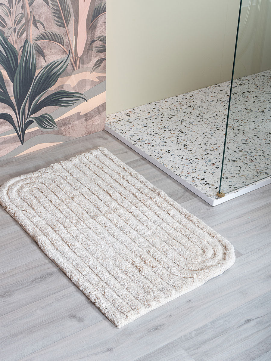 - Wat deze badmat speciaal maakt, is het getuft dessin met prachtig lijnenspel en afgeronde hoeken