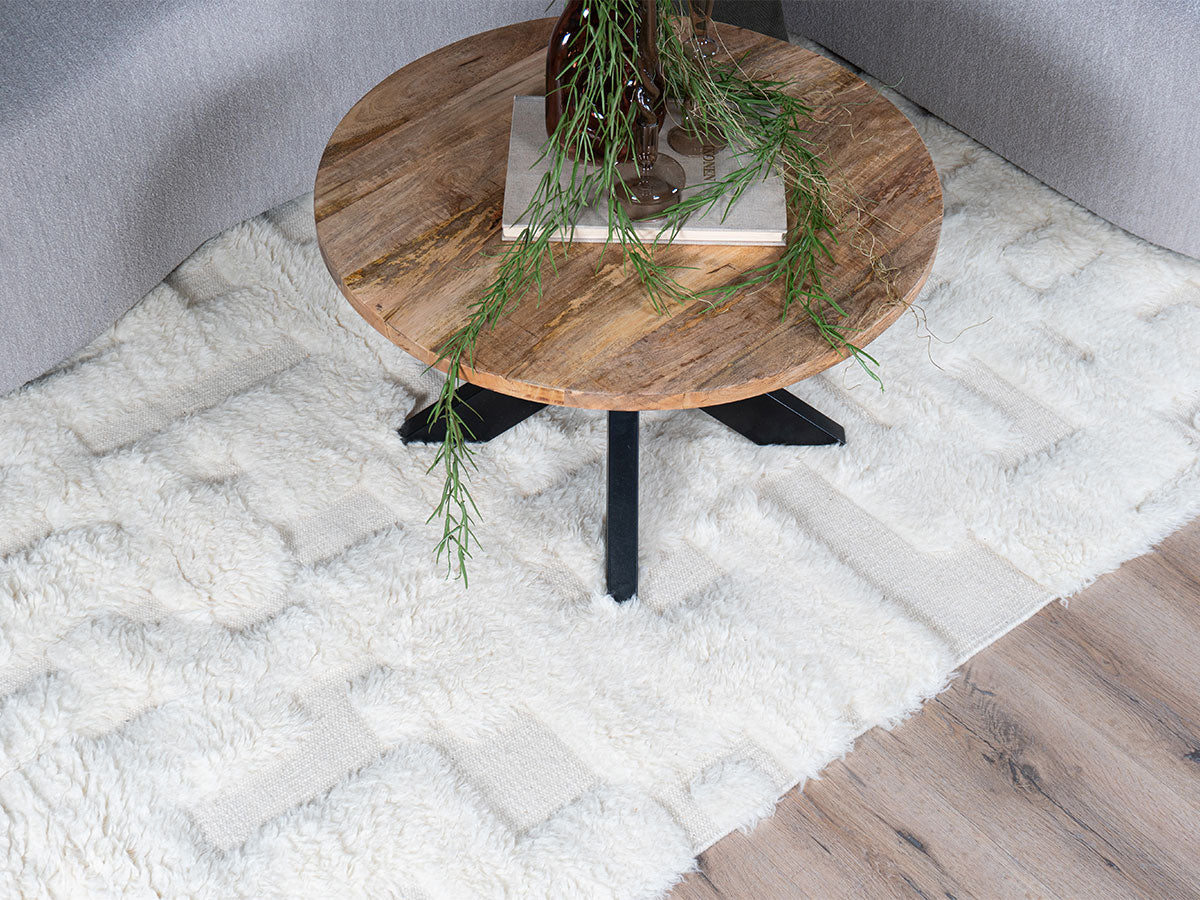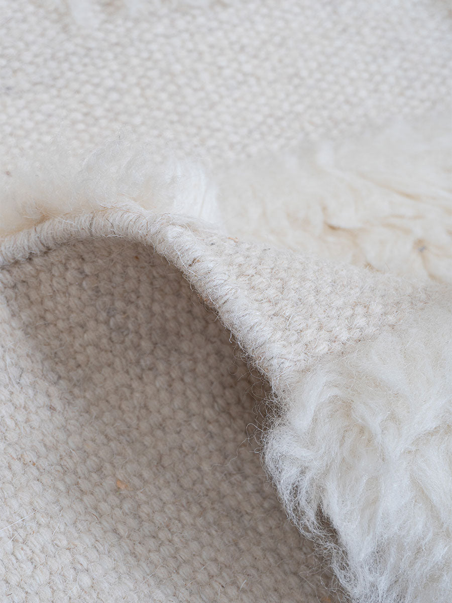 - Het wollen vloerkeed heeft een hoge pool, voelt heerlijk zacht aan en heeft een hoog knuffelgehalte