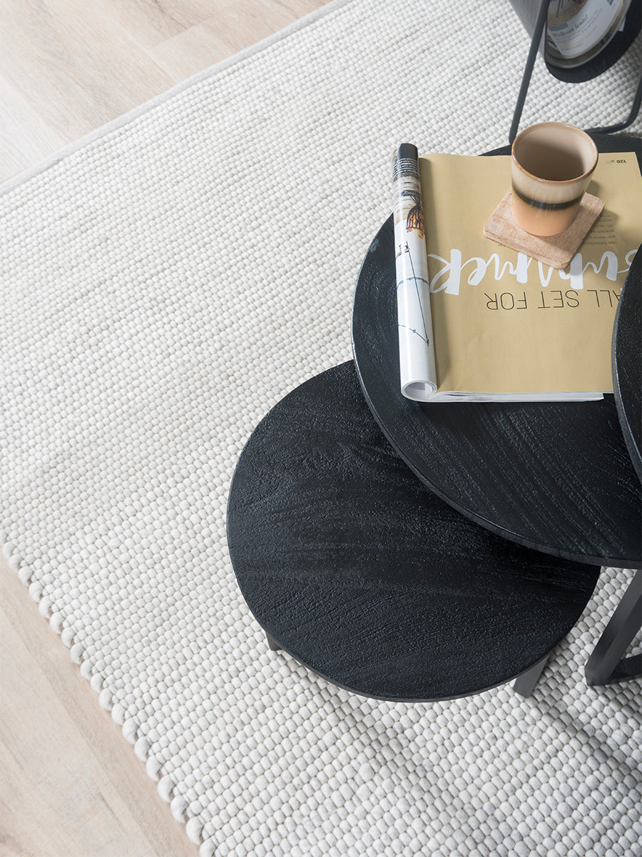 - Door de mooie neutrale kleur en de natuurlijke materialen heeft Karpet Pebbel de uitstraling van een design vloerkleed