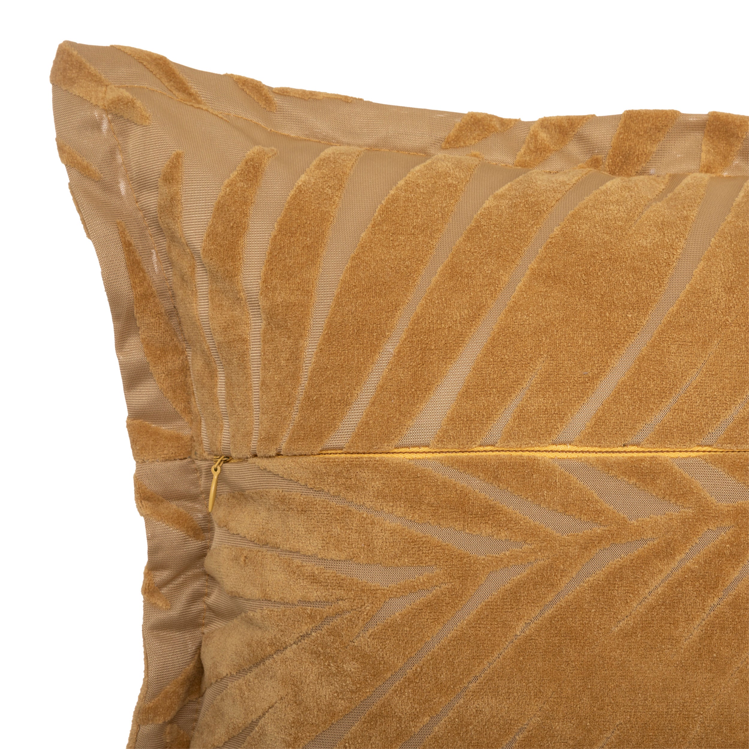 Velvet Sierkussen Leaf 3D Reliëf – Oker Geel – 45 x 45 cm – (Inclusief