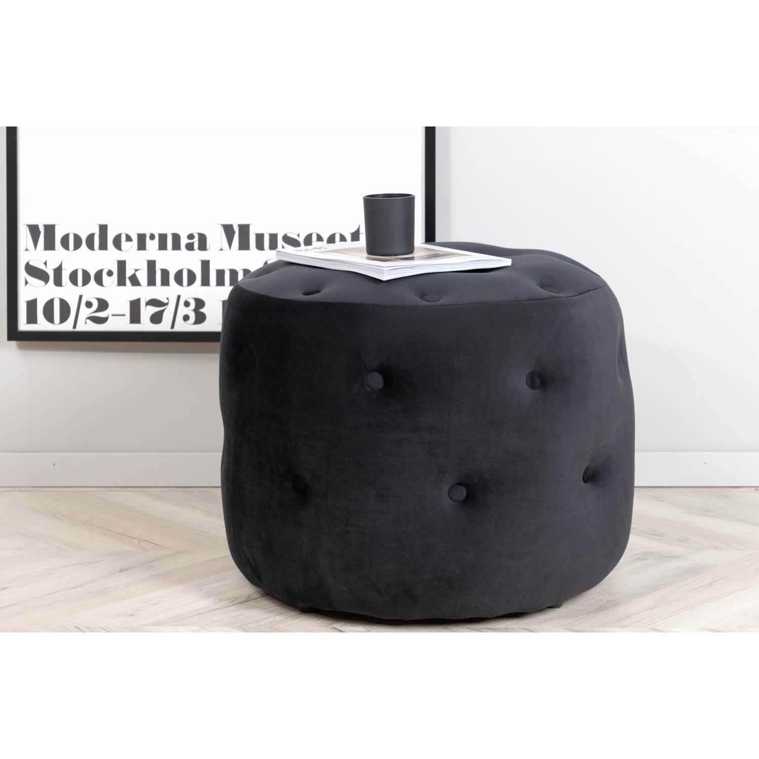 - Een poef in de strakke en moderne kleur Zwart.