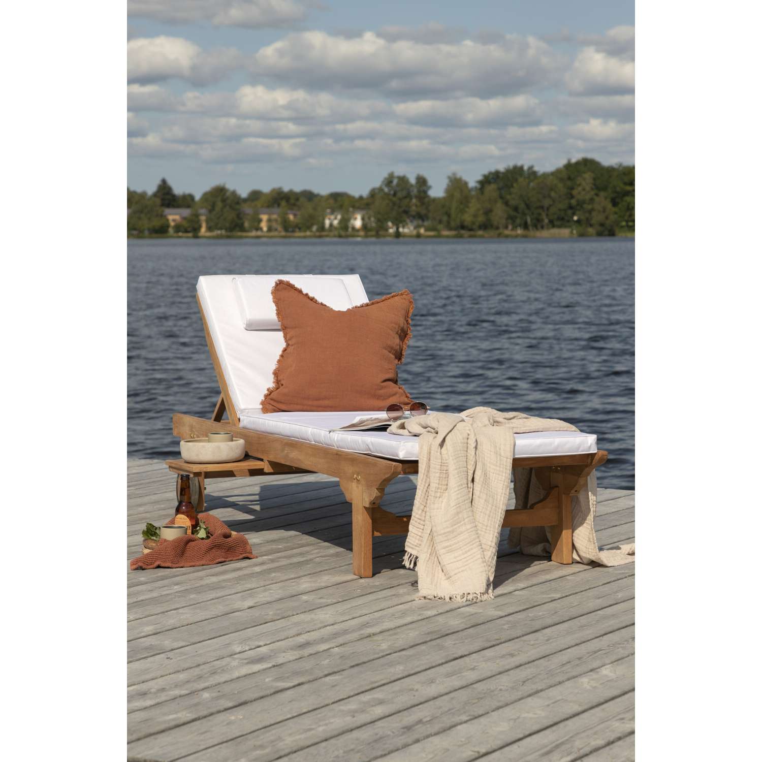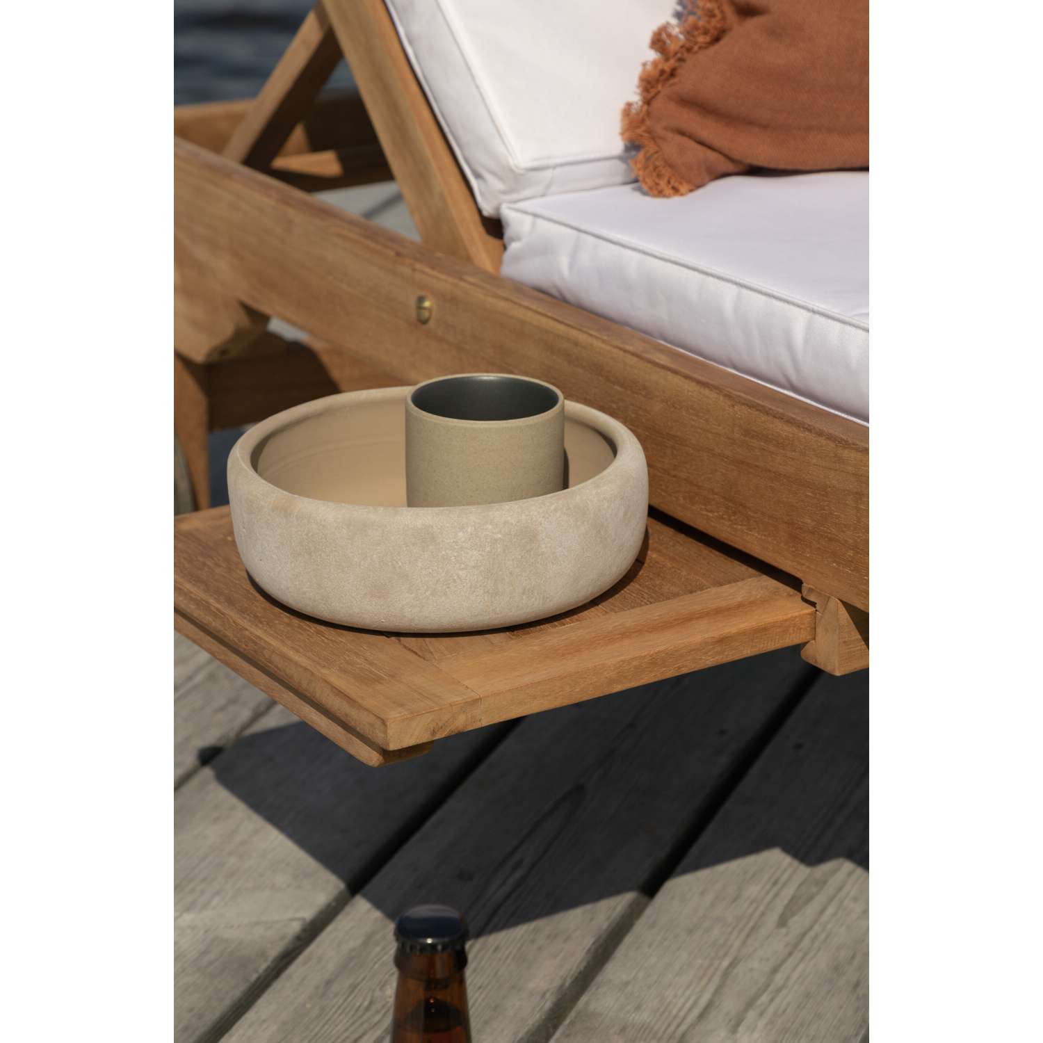 - Het zonnebed biedt ontspanning en comfort en past perfect op terras of balkon met het dienblad – ideaal om je boek neer te leggen en te genieten!