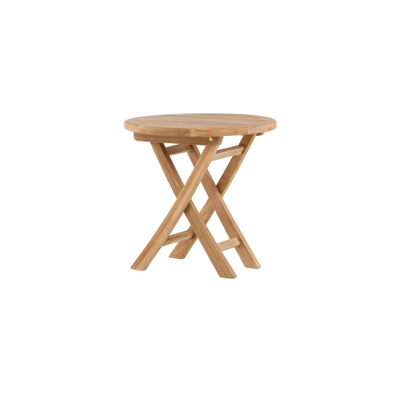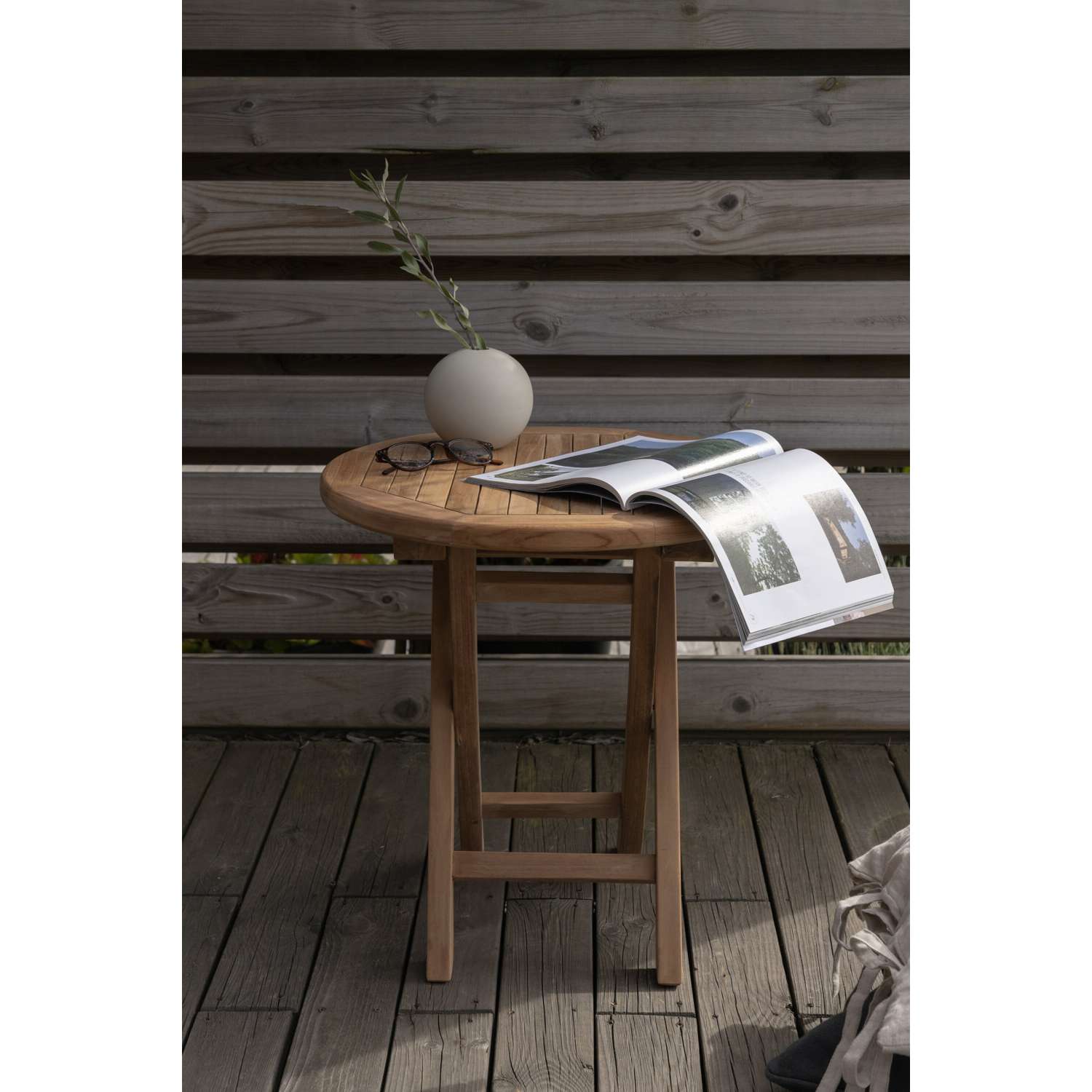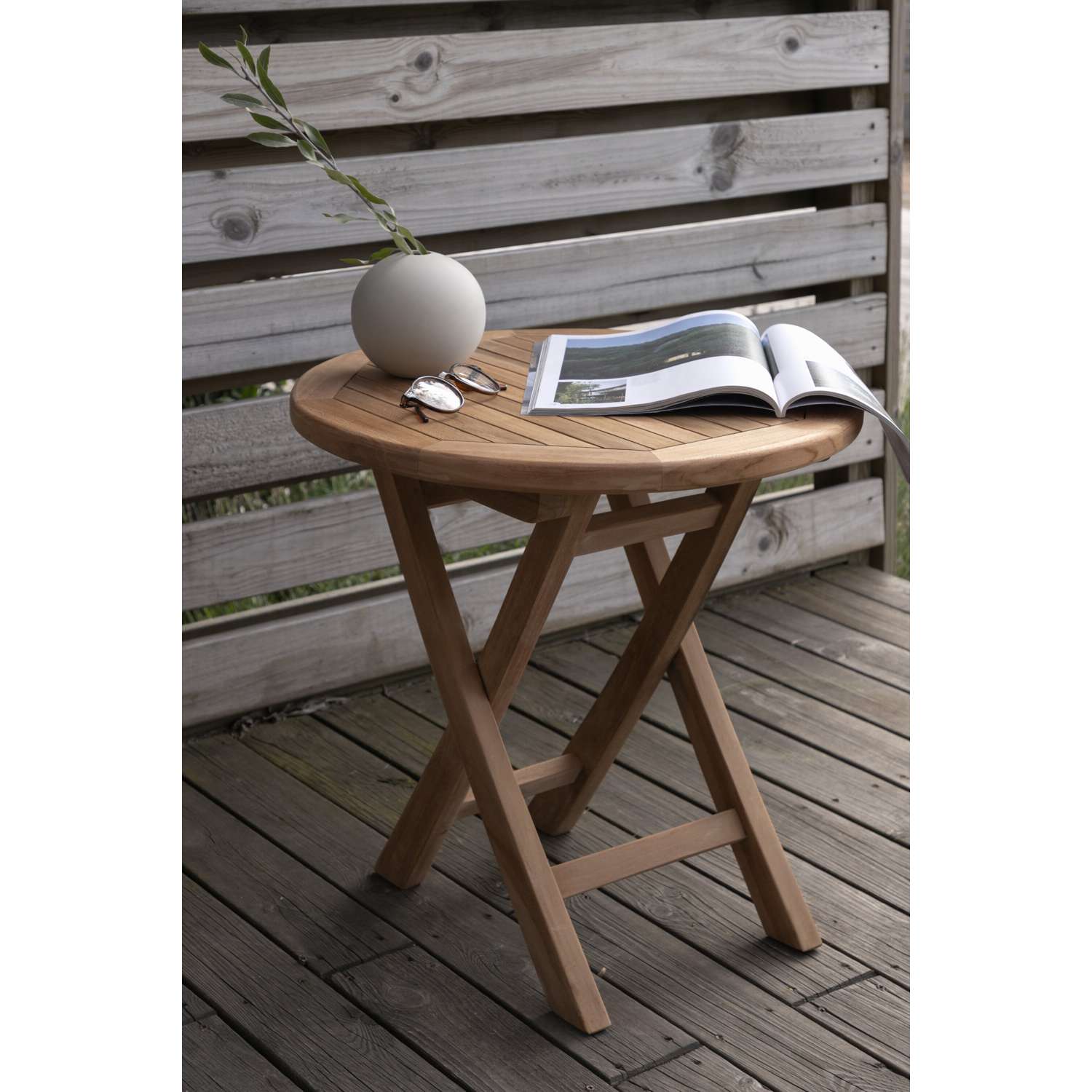 - Kenya is een rond cafétafel met een stijlvolle teakhouten afwerking