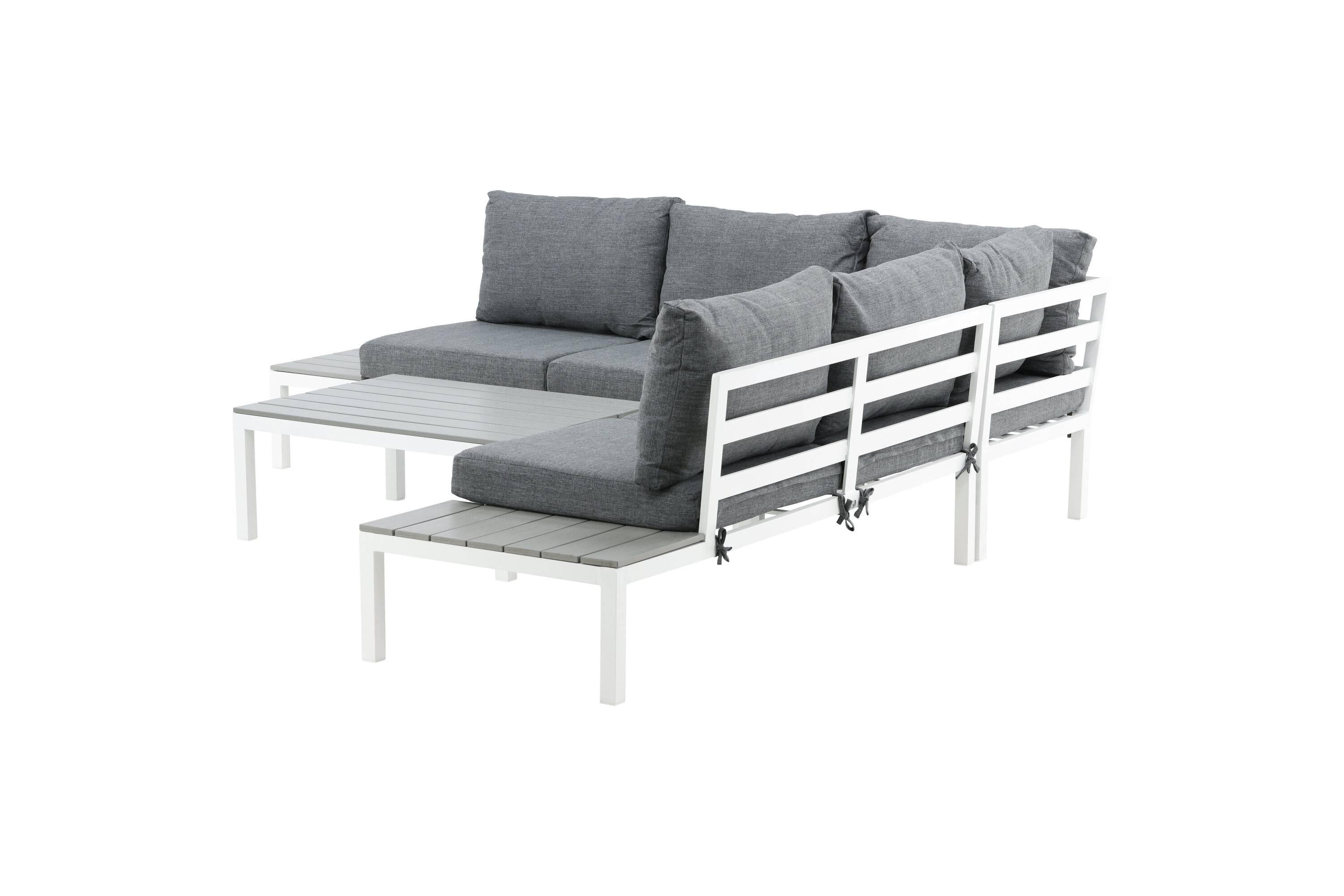 - Aan beide zijden van de bank zijn kleine bijzettafels te vinden, perfect voor extra opbergruimte