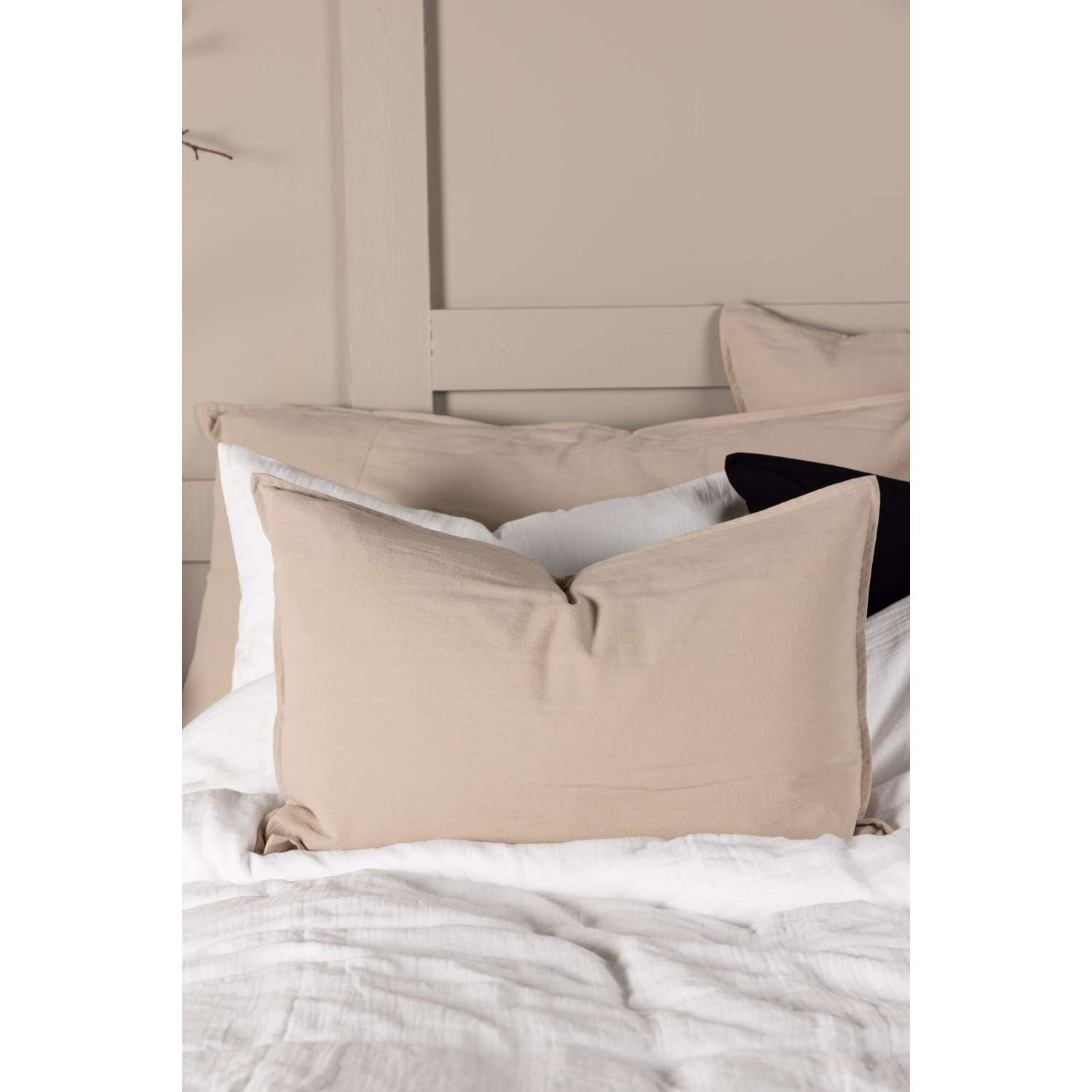 - De kussensloop heeft een discrete rits aan de achterkant en een biesrand van dezelfde stof