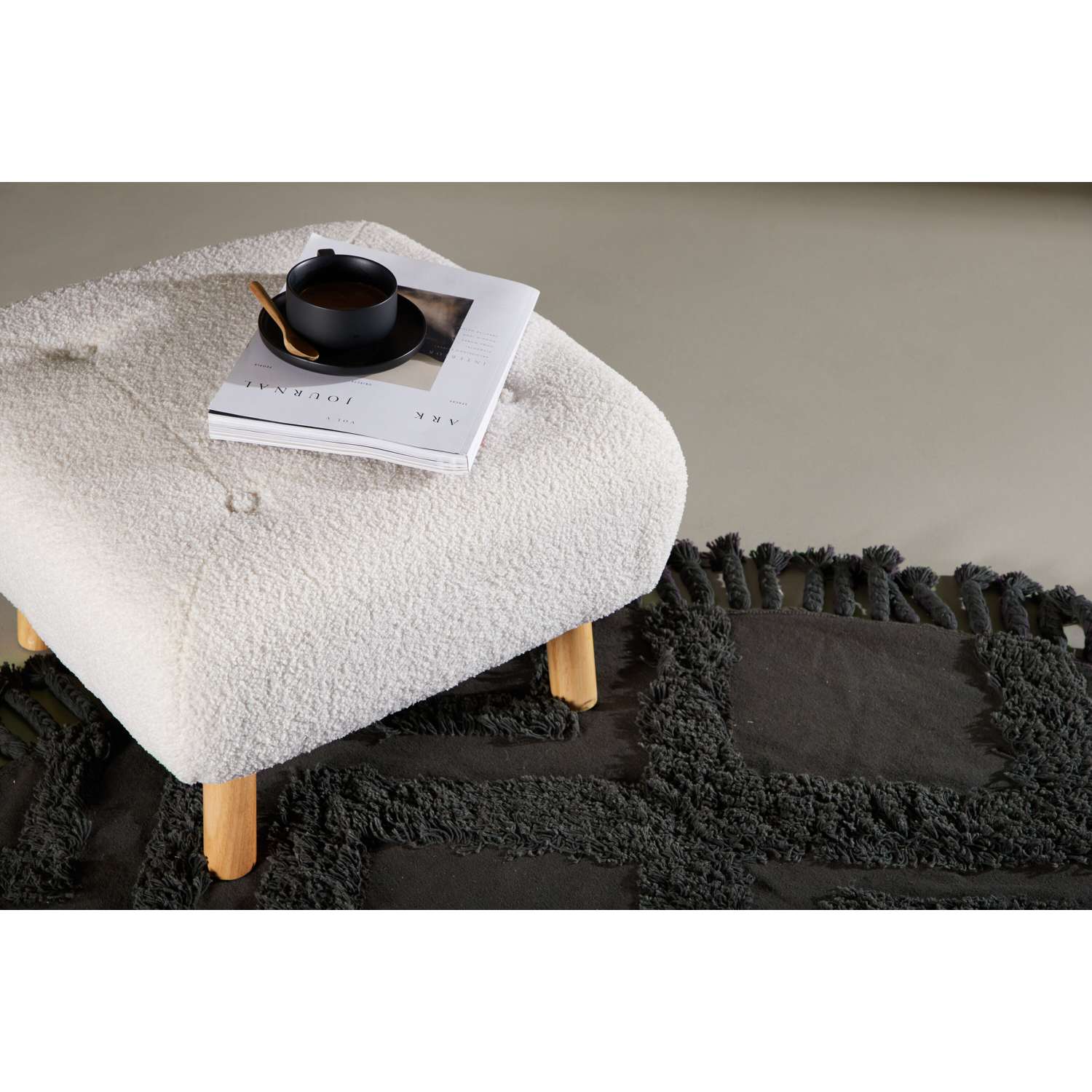 - Gemaakt van knuffelige stof, hout en metaal met diep gestikte knopen in de stof die een stijlvol detail vormen.
