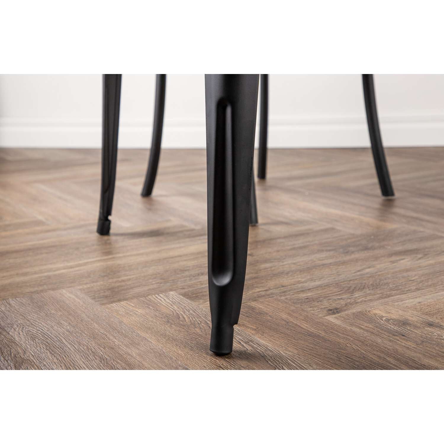 - Gemaakt met een vierkant tafelblad van zwart MDF en tafelpoten van zwart metaal.
