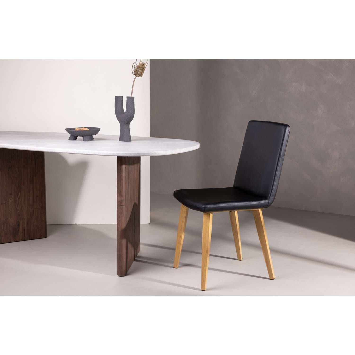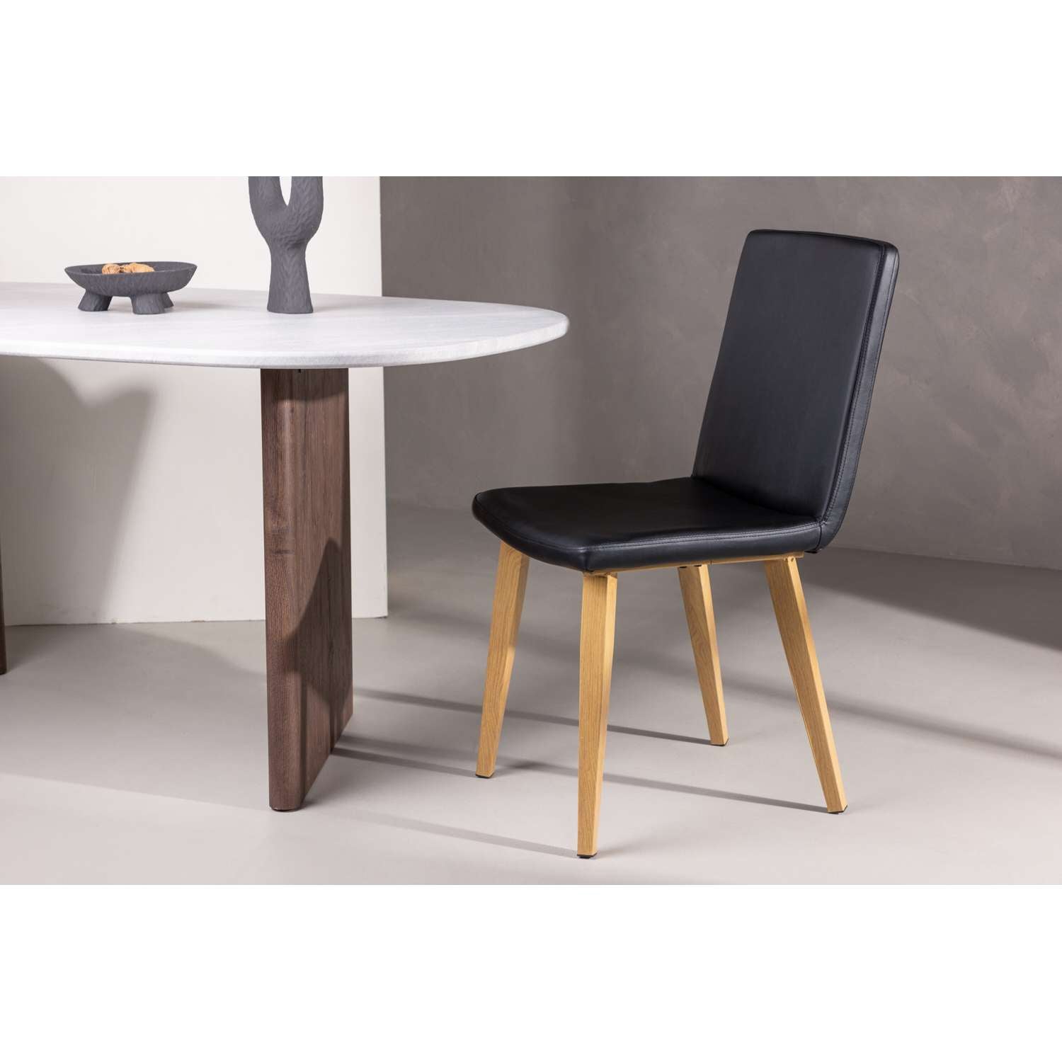 - De stoelpoten zijn licht uitlopend in natuurlijk hout en geven een stevige indruk.